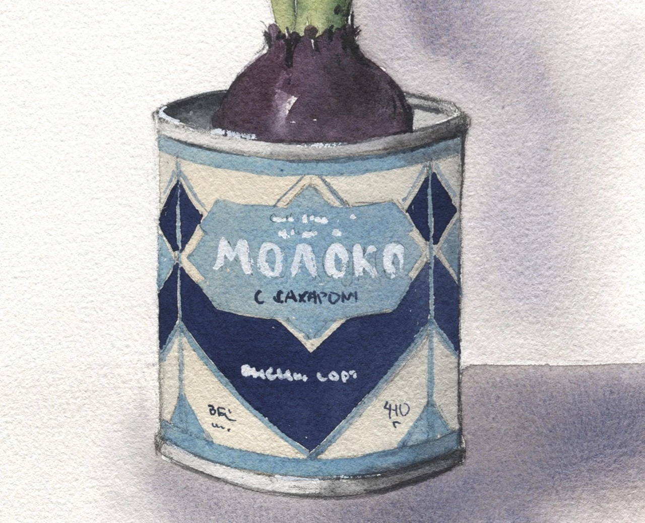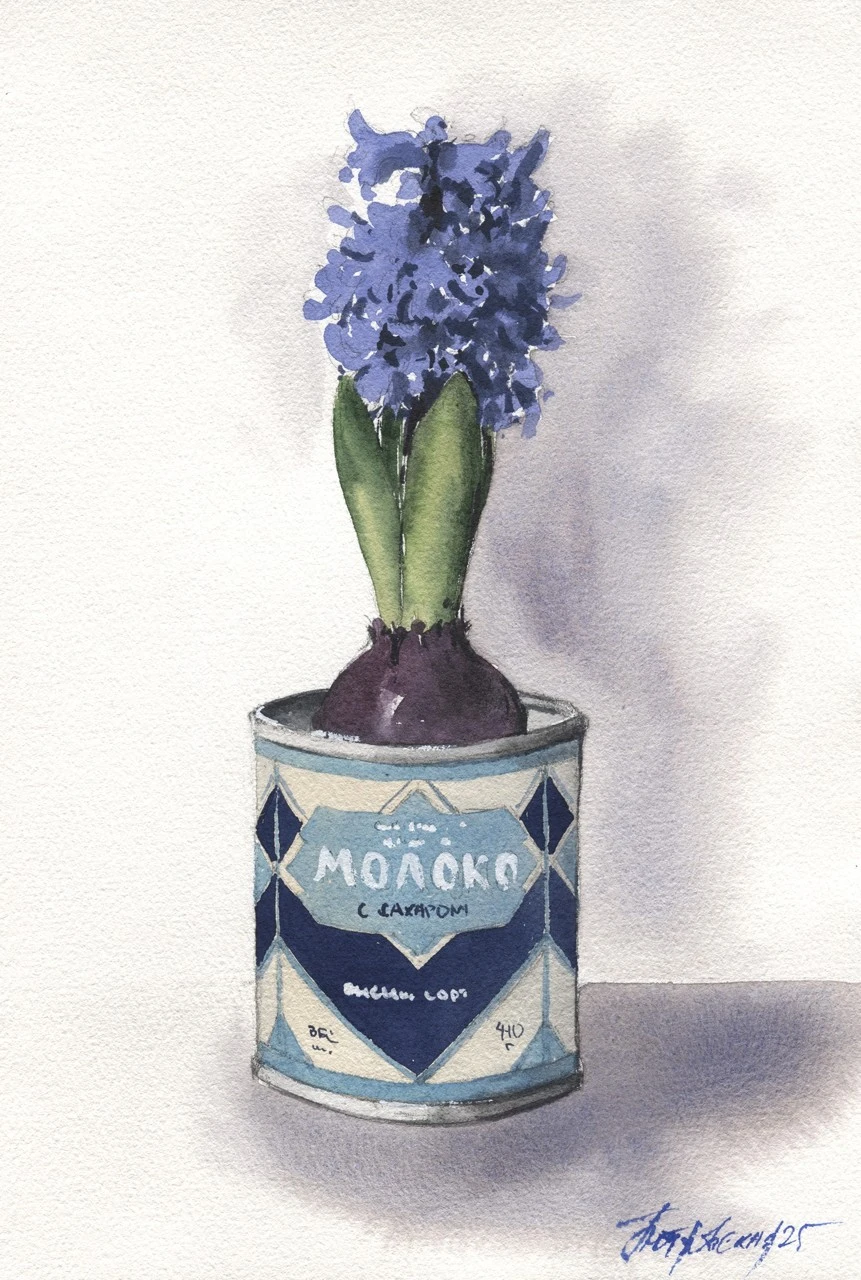 Весенний натюрморт с гиацинтом в банке из под сгущенки.