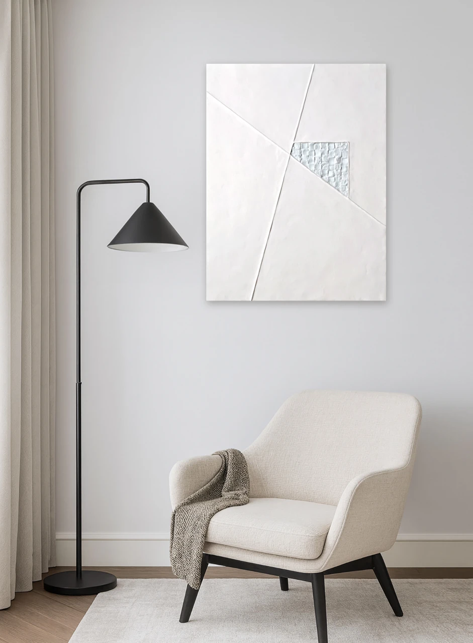 «Folded Light» — настенное панно, где чистые линии и изогнутые плоскости создают ощущение света, заключённого в материале.