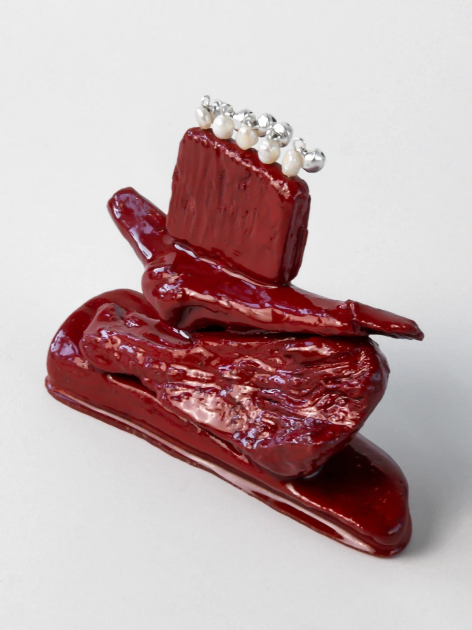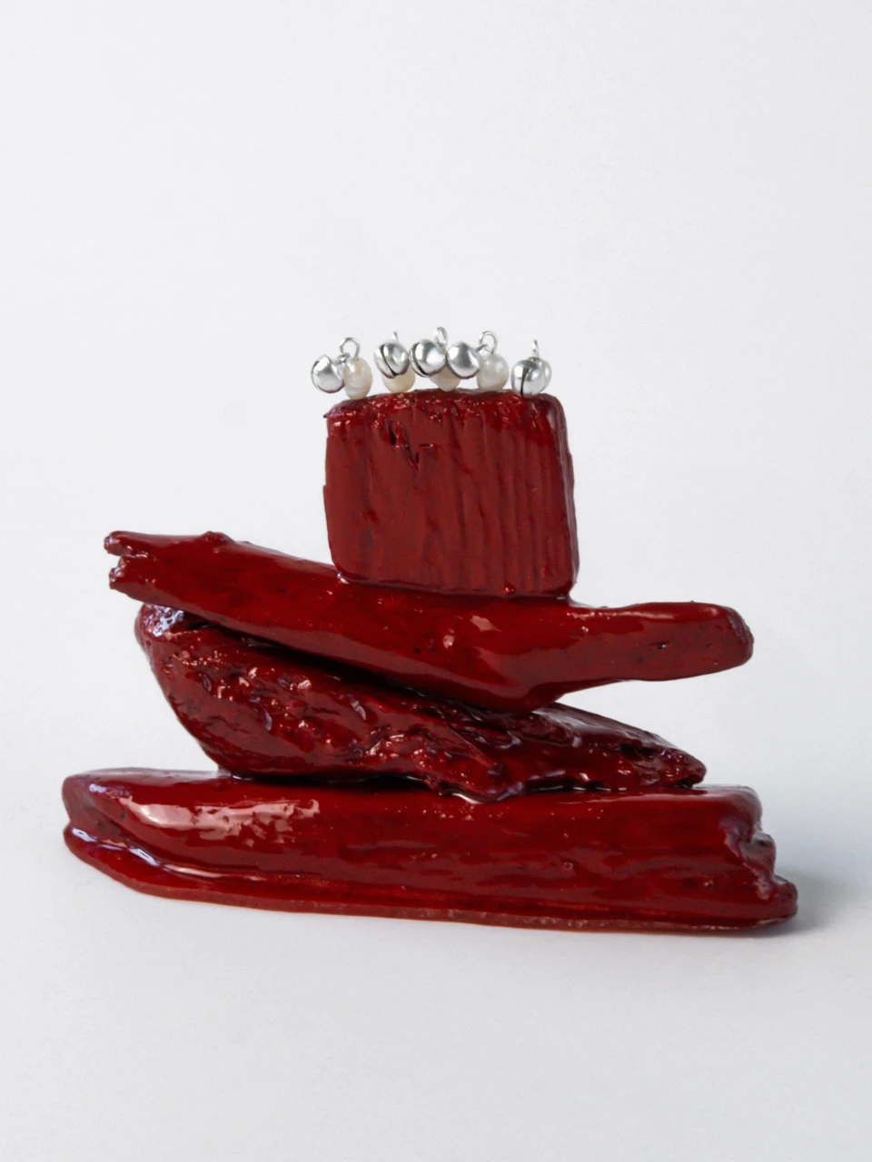 Красная эпоксидная смола формирует на поверхности объектов своеобразную броню — знак силы, значимости обладателя, визуальное закрепление жеста: «ты заслуживаешь быть защищённым».
