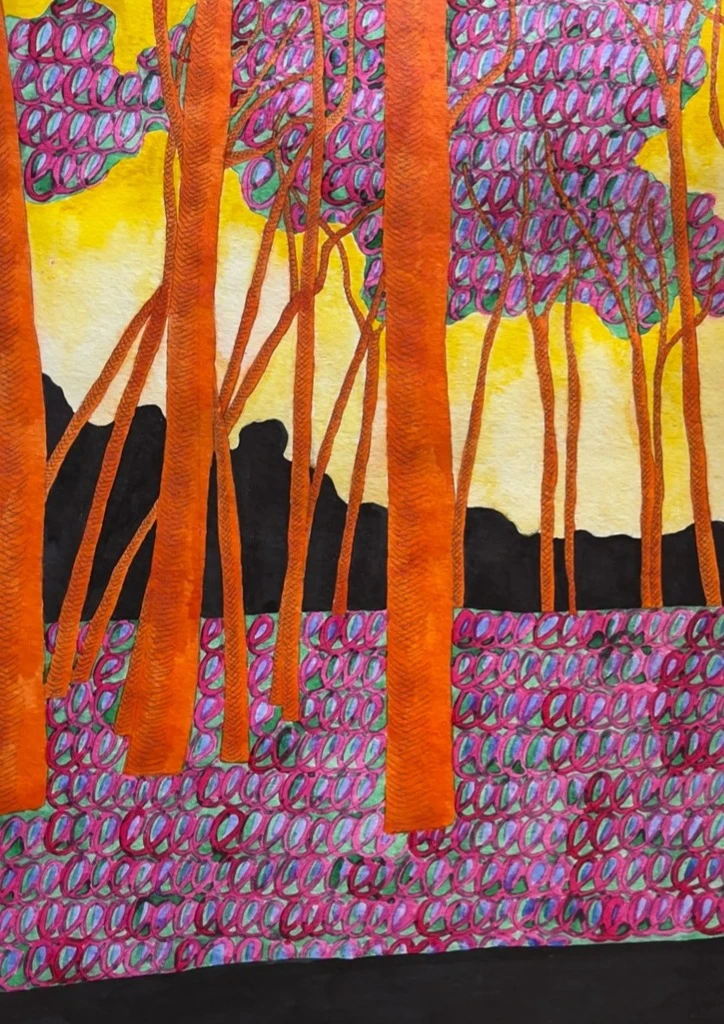 Меня зовут Юлия Ветрова, я сценограф, живописец и художник по костюмам. Работаю в стиле графика/живопись. Я рисую пейзажи, где деревья хранят детские воспоминания, а воздух напоен историями прошлого и настоящего. Я стремлюсь передать глубокое чувство «дома» в каждом пейзаже, поиска места.