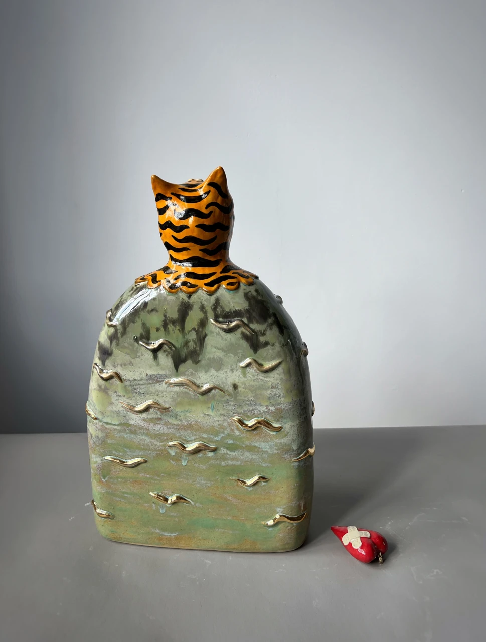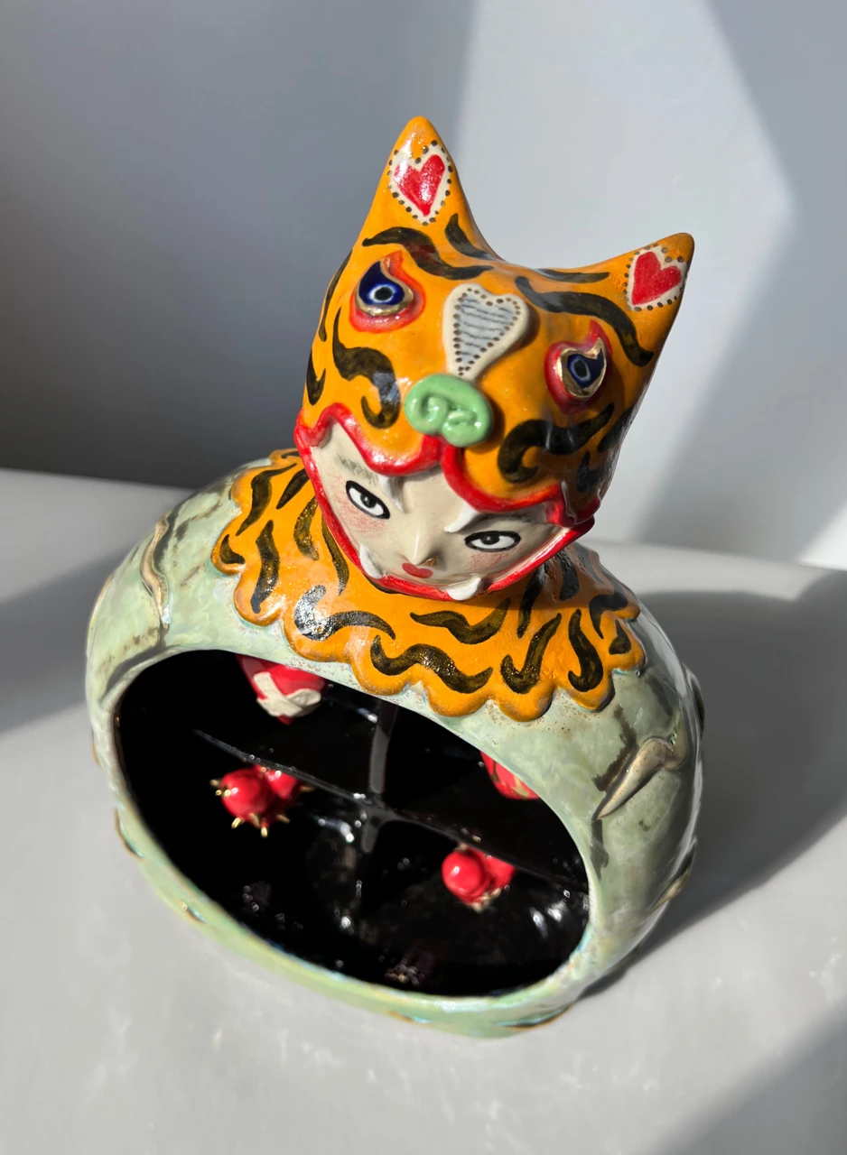 Катя Матвеева исследует керамику как мост между тактильностью и воображением. Её антропоморфные объекты, созданные в технике «ручная лепка», приглашают зрителя к игре, напоминая о детском восприятии мира. Работы Кати Матвеевой находятся в частных коллекциях по всему миру: в России, США, Китае, Канаде и ЕС.