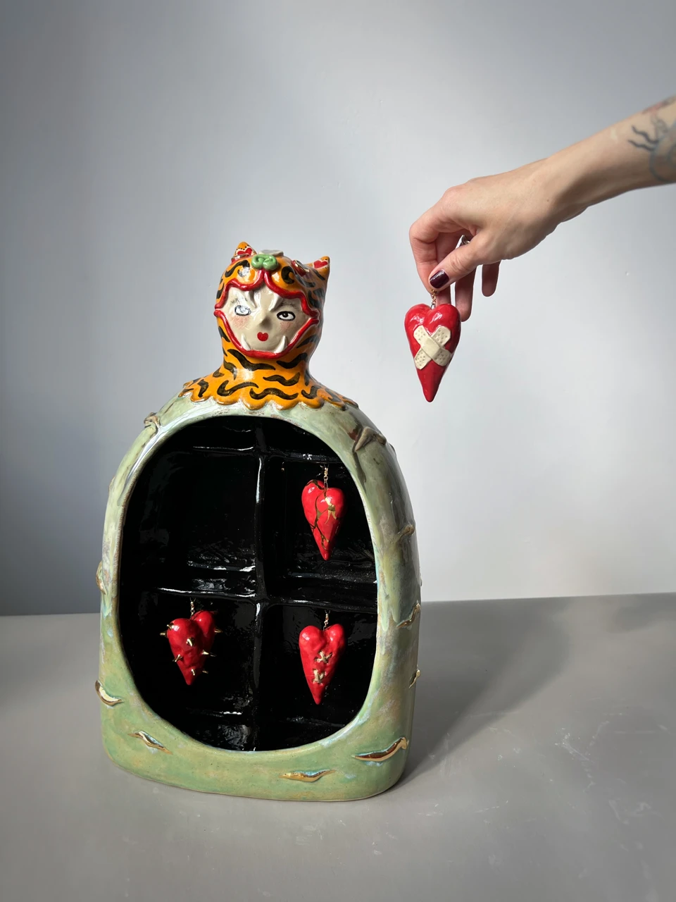 Тигрица Таира коллекционирует разбитые сердца. В ее сокровищнице 4 сердца, которые крепятся на карабины. Их можно отстегивать, менять местами. А еще сердца «бьются», если их привести в движение рукой.