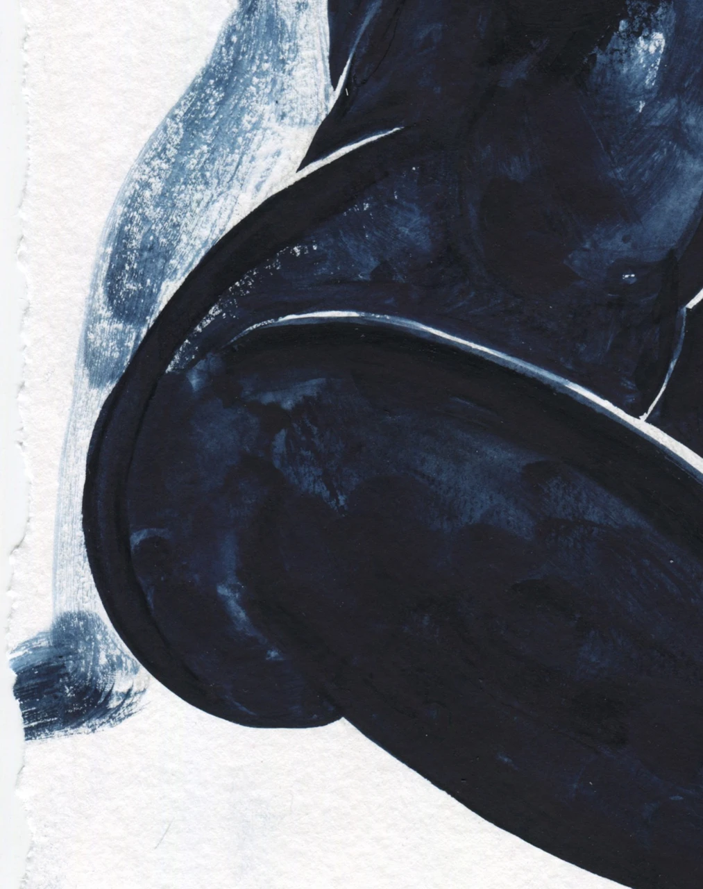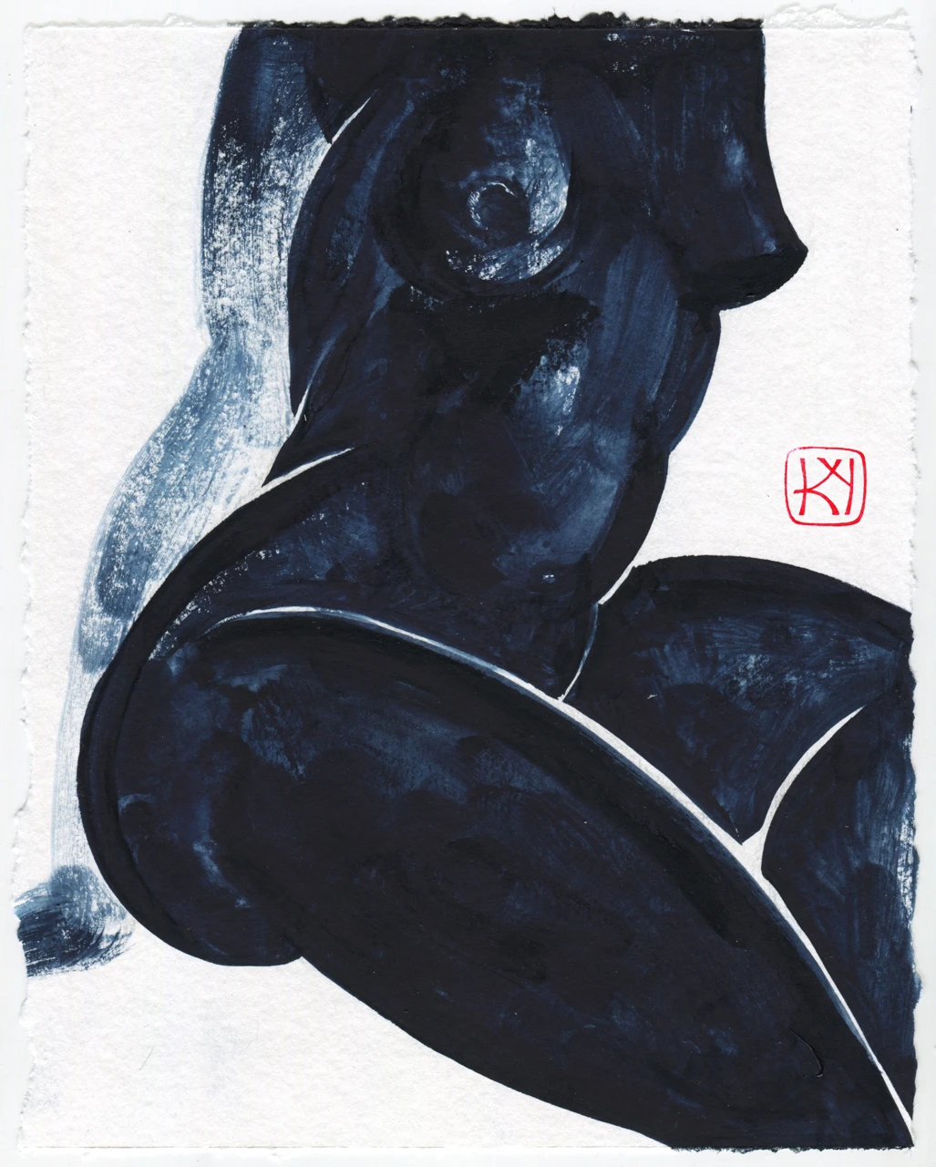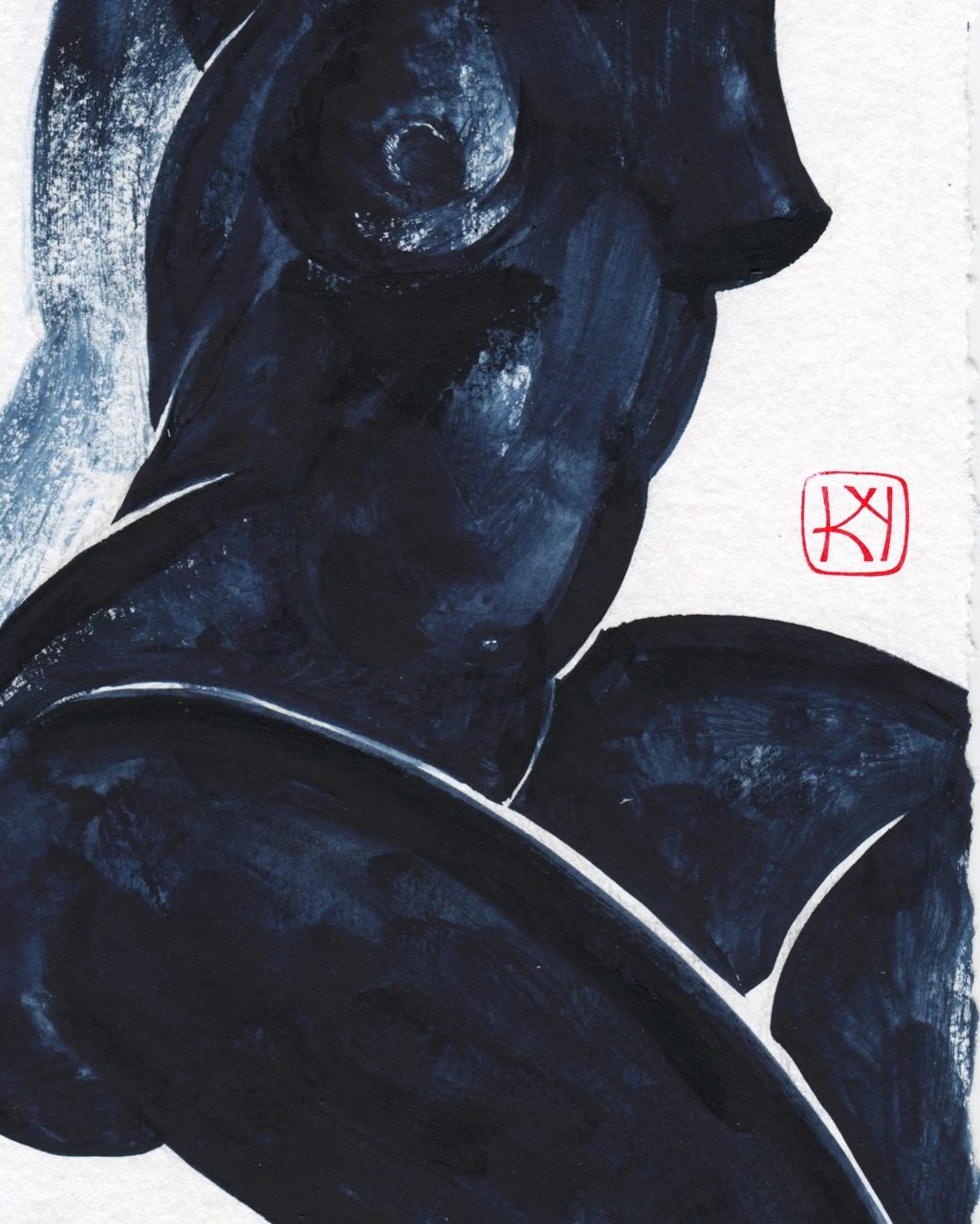 Катя Улитина. Темный Индиго. Обнаженный женский силуэт. Акварель, ручной штамп. В комплекте сертификат и фирменная упаковка от автора.