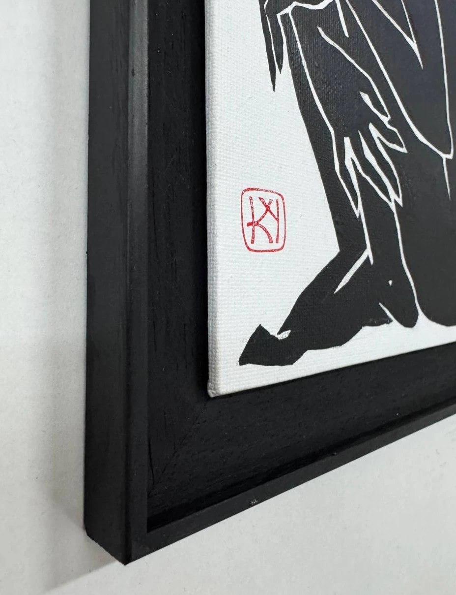 Демон не выспавшийся; основано на реальных событиях, 2025 г. Холст на картоне, акрил, защитный лак, деревянная рама.