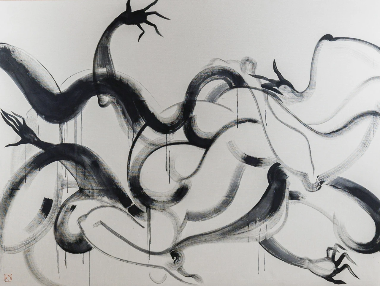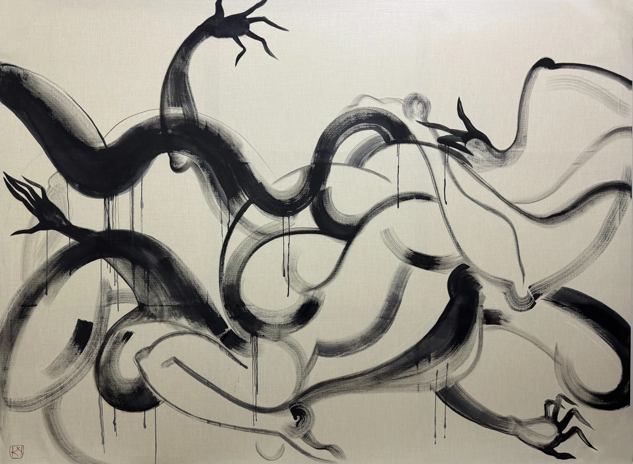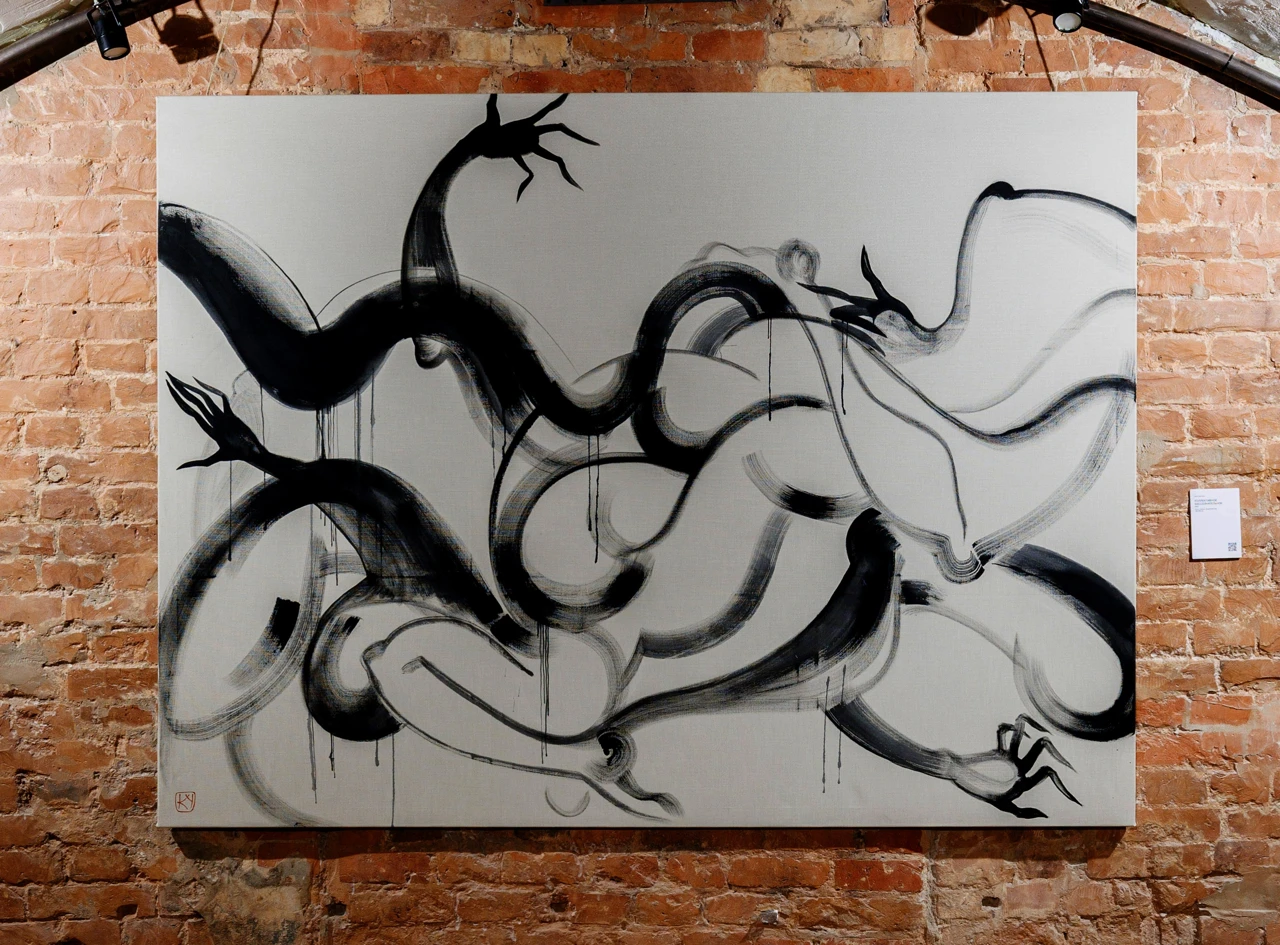 «Эта серия — тест зрителя на его способность принять деконструкцию и эмоциональную сущность движения, запечатанного в динамический иероглиф. Это изображение того, как визуальный образ, полный переживания и страсти превращается в начертательный знак. Экспозиционное построение строится на сравнении фигуративного образа и его отражении — абстрактном переживании формы. Основная идея проекта вернуться к архаическому, подсознательному переживанию художественного материала. Зрителю предлагается метод перезагрузки реальности из узнаваемой образности в беспредметный код, имеющий индивидуальное прочтение для каждого посетителя выставки.»
