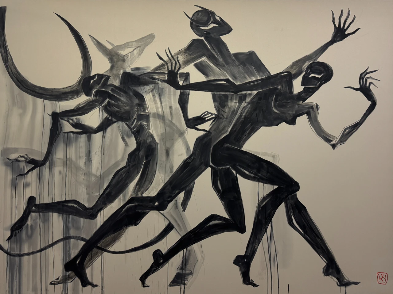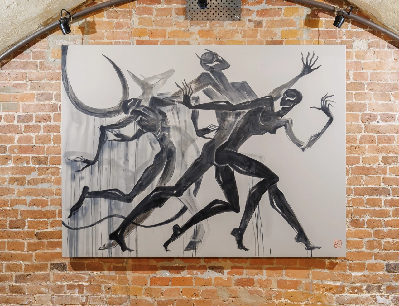 «Эта серия — тест зрителя на его способность принять деконструкцию и эмоциональную сущность движения, запечатанного в динамический иероглиф. Это изображение того, как визуальный образ, полный переживания и страсти превращается в начертательный знак. Экспозиционное построение строится на сравнении фигуративного образа и его отражении — абстрактном переживании формы. Основная идея проекта вернуться к архаическому, подсознательному переживанию художественного материала. Зрителю предлагается метод перезагрузки реальности из узнаваемой образности в беспредметный код, имеющий индивидуальное прочтение для каждого посетителя выставки.»