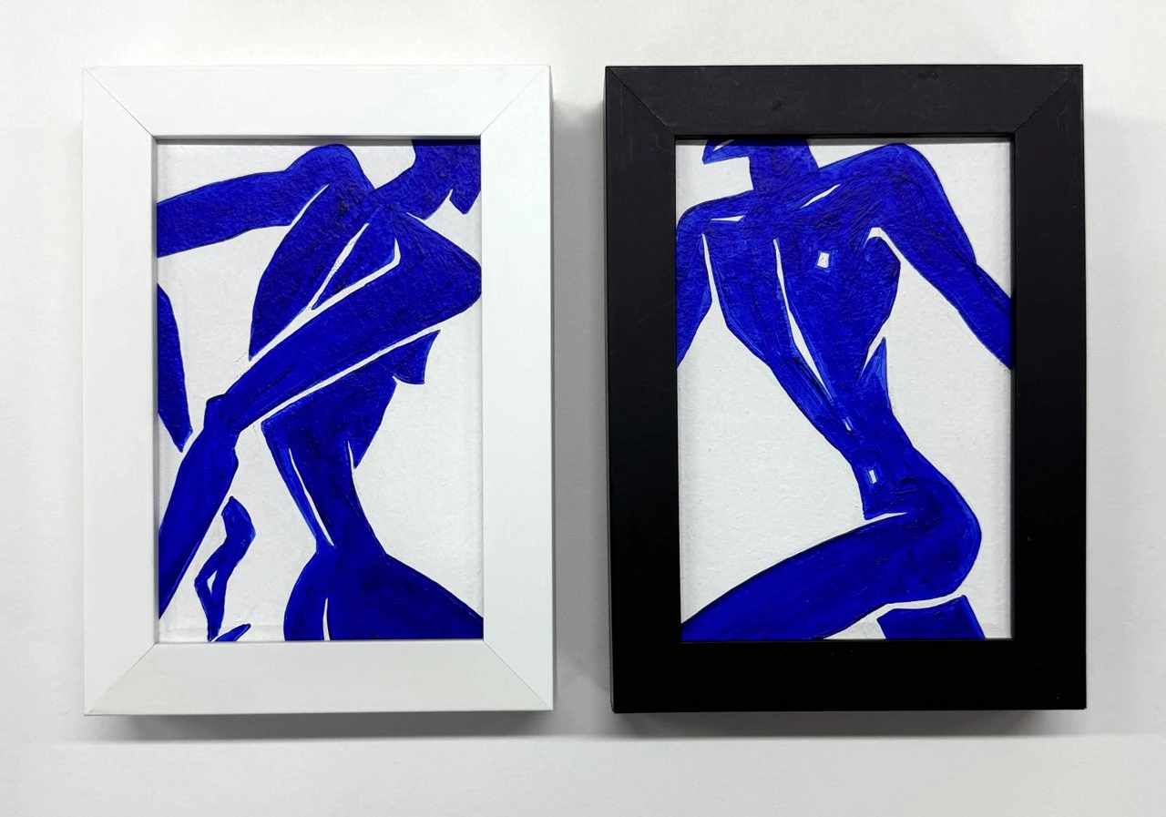 Серия продиктована многочисленными комментариями зрителей о том, что фигуративные работы, исследующие тему движения, напоминают Анри Матисса. В этой серии я осознанно использую пластику, отсылающую к Матиссу, и синий цвет из его легендарной серии «The blue nude».