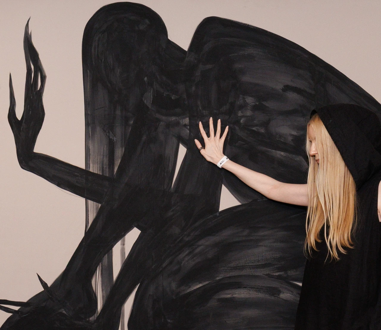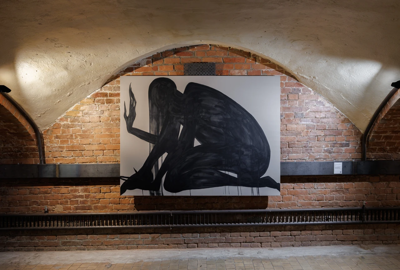 Плотная ткань Блэкаут на подрамнике, акрил, 150:200 см, персональная выставка Кати Улитиной Неназванная пустота, Винзавод, 2025