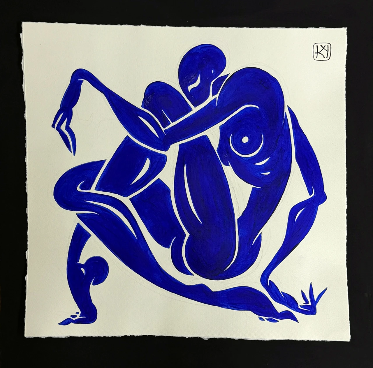 Полинезия. Индиго, 2025 г, акварельная бумага Fabiano, акрил, работа оформлена, деревянная рама, стекло.