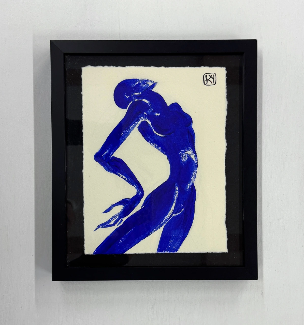 Катя Улитина, Женский силуэт, индиго, 2025 г, акварельная бумага Фабиано, акрил, размер графики 16:21 см.