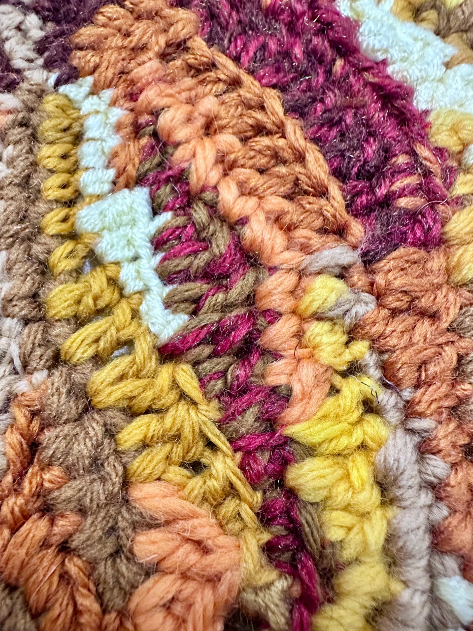 Ручное вязание крючком. Работа натянута на основу. Участвовала в нескольких выставках в Москве.