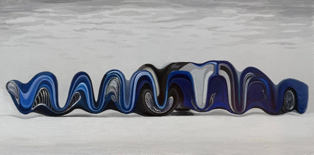Картина «Биение моего сердца» отражает ритмы жизни и эмоций через абстрактные волны, переливающиеся глубокими оттенками синего и серого. Она передает внутреннее волнение, движение и теплоту человеческого сердца.