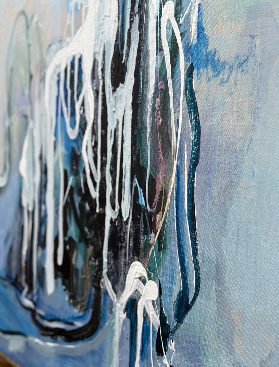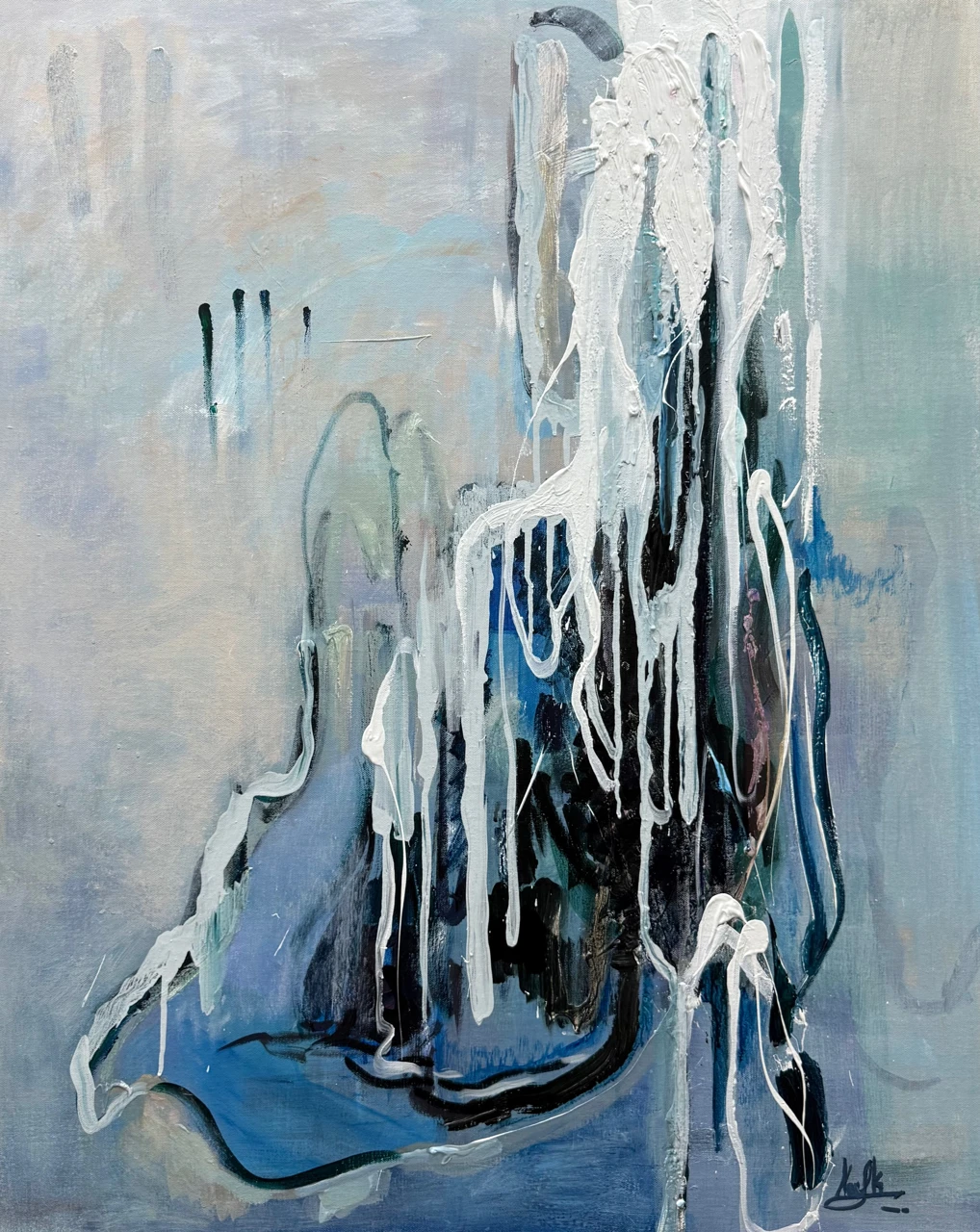 Работа исследует момент внутреннего собирания формы. Вертикальная композиция построена через многослойное наложение цвета и объемной фактуры.