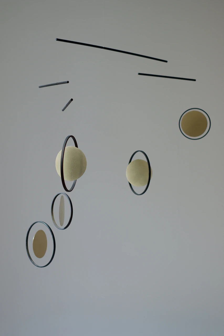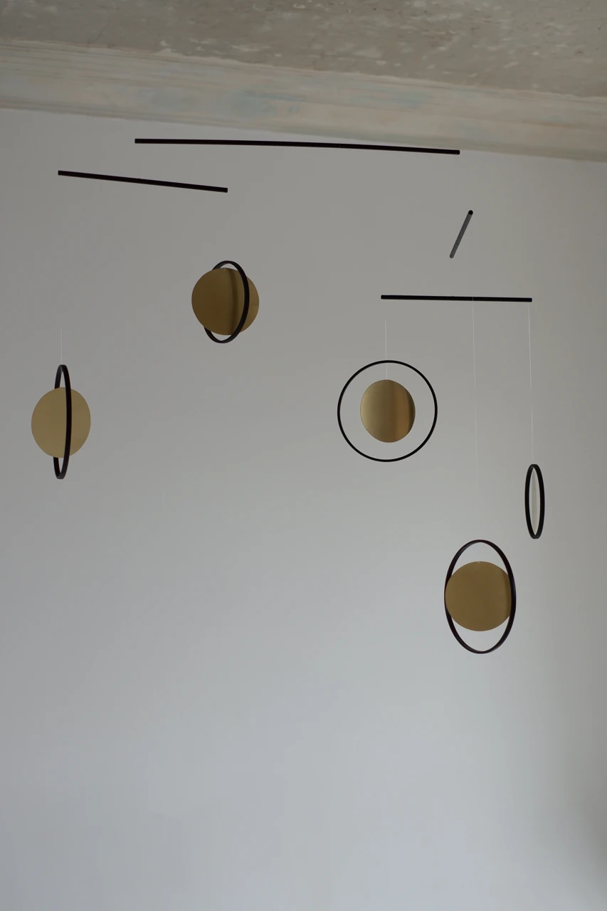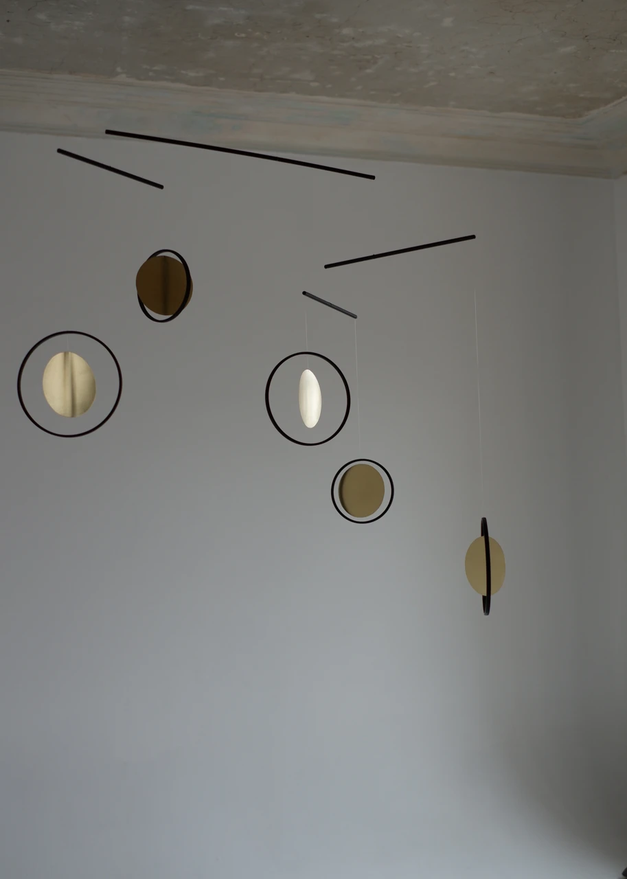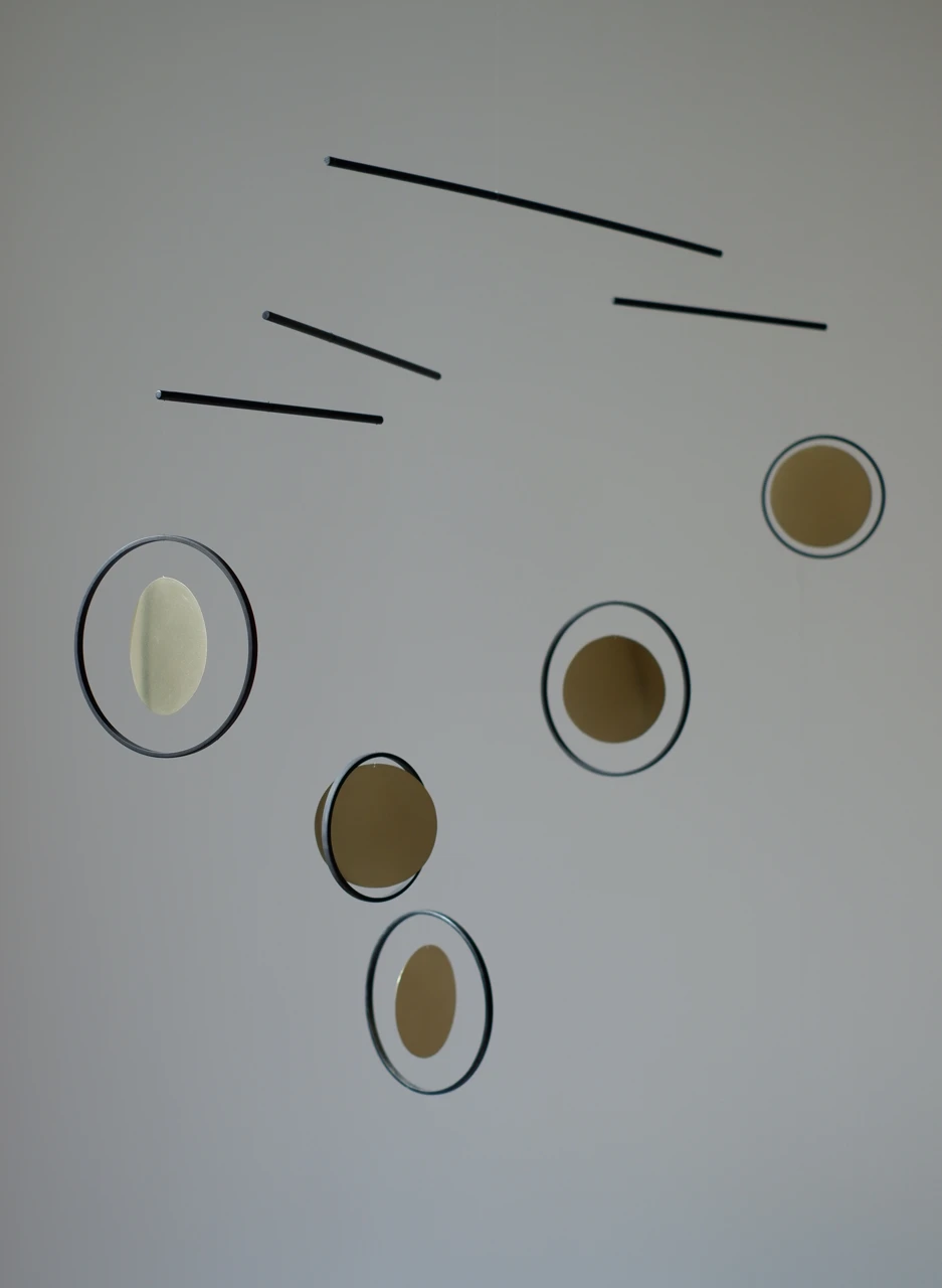Мобиль работает как «белый холст» в пространстве: его геометрия изменчива, а тени, отбрасываемые на стены, рисуют новые сюжеты. Это приглашение к сотворчеству, где объект лишь задает ритм, а смыслы рождаются в воображении наблюдателя. Здесь движение воздуха становится движением фантазии, не имеющей границ и жестких форм.