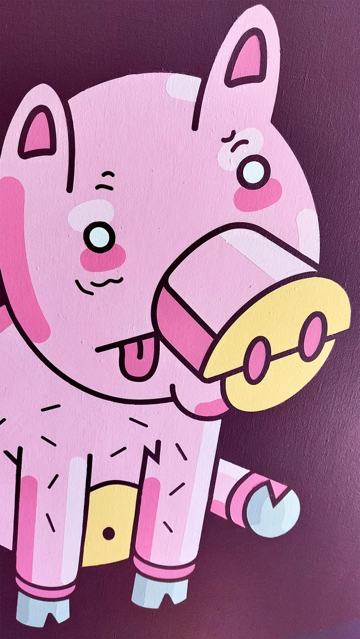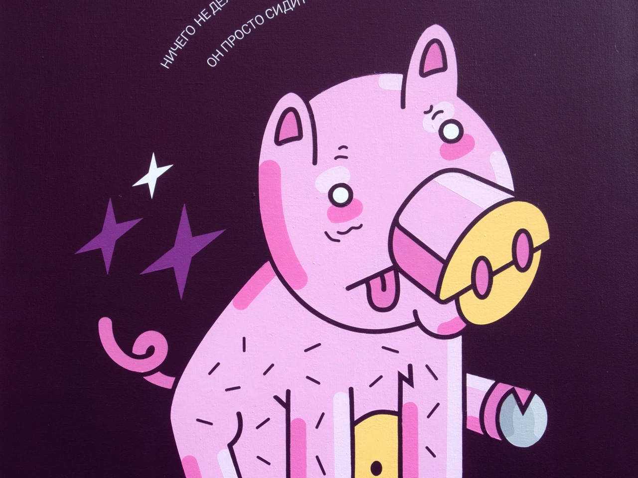 Работа входит в серию Добрые звери. Совмещение текста и образа в игровой манере.