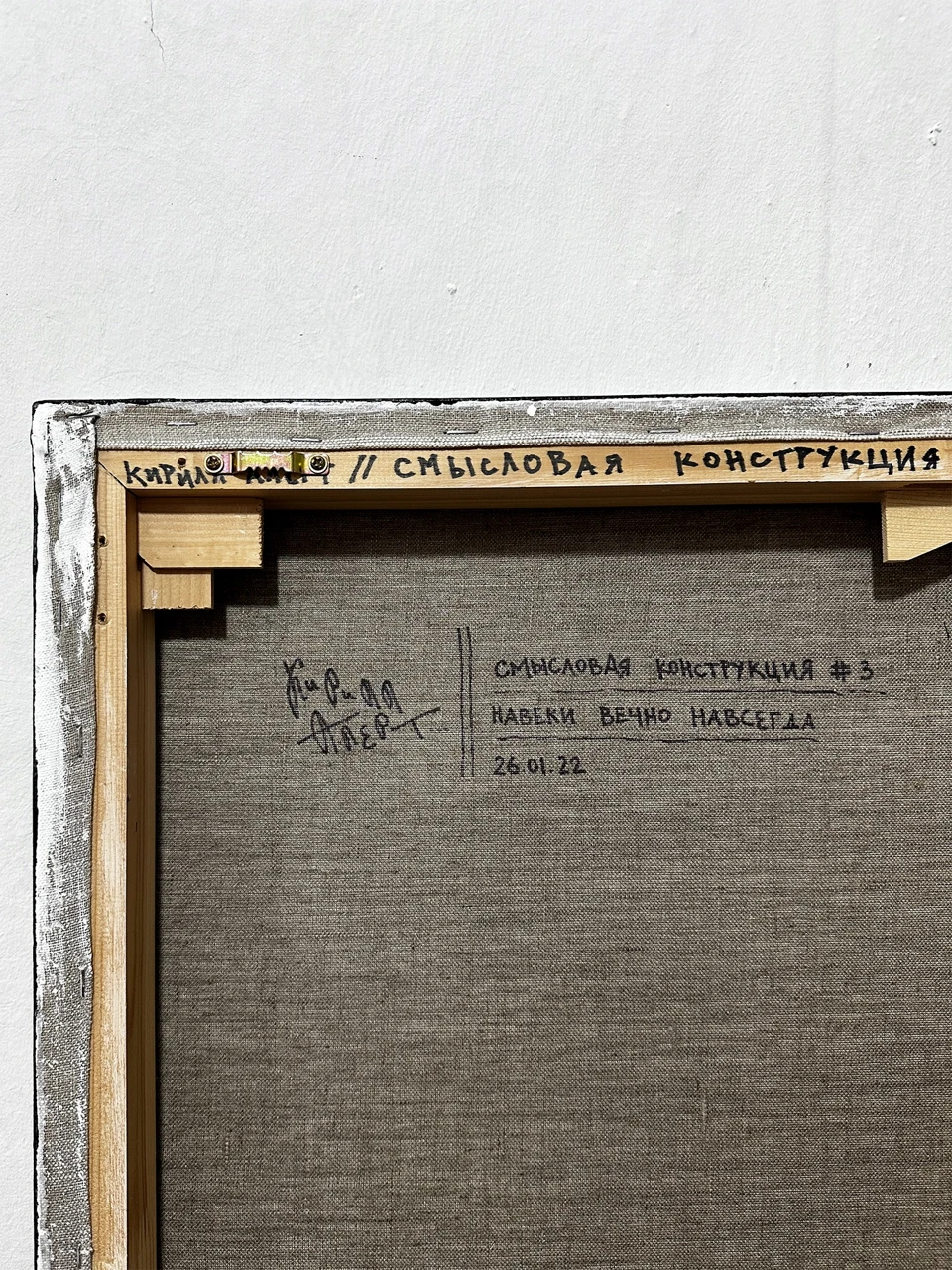 Одна из двух оставшихся работ из серии Лозунги, Крики и Смысловые конструкции. История о постоянстве непостоянства и о конвеере из громких слов, который непрерывно движется вперед.