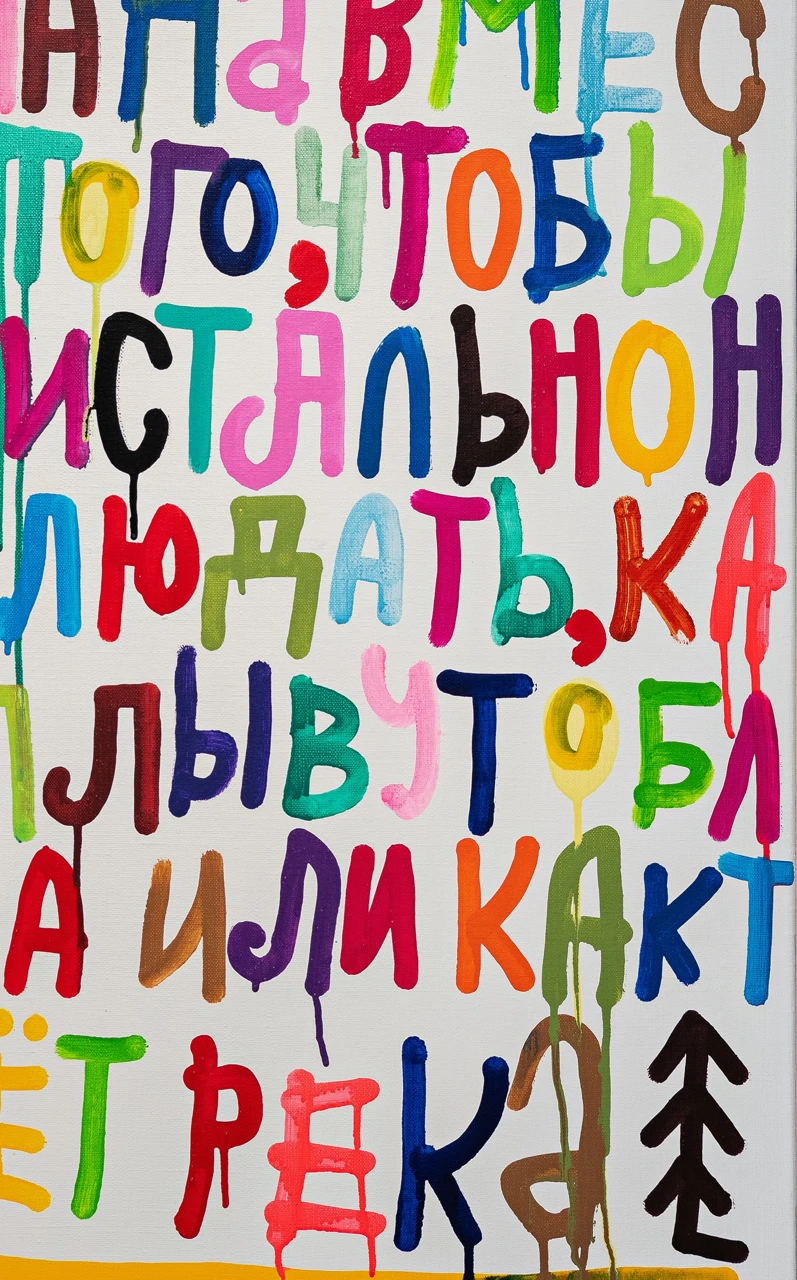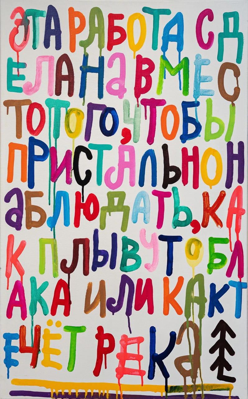 Как и в предыдущих проектах — «Попытка компенсации» (2020), «Чуть больше привычного» (2021), «Всем все понятно» (2023), «Это другое» (2025), — художественное высказывание приобретает у Лебедева форму афористичной языковой игры и подвижной многоцветной пластики, но теперь внутренний монолог автора становится более явным.