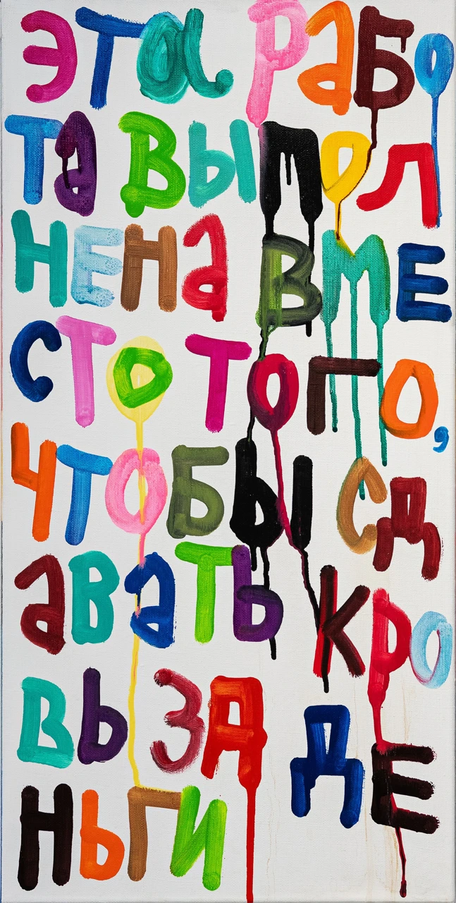 Новая серия кажется едва ли не приятельским жестом художника, знакомящего всех со своей обыденной жизнью. Каждая картина оказывается «сделана вместо того, чтобы», а из написанного вслед за этой формулой можно легко составить список дел: «позвонить другу», «пойти на турник», «лежать на диване», «смотреть сериалы», «гладить кота», из которого возникает понятный и вызывающий симпатию образ человека, такого же, как все мы, — если не помнить, что любые простые занятия современный художник способен превратить в часть работы.