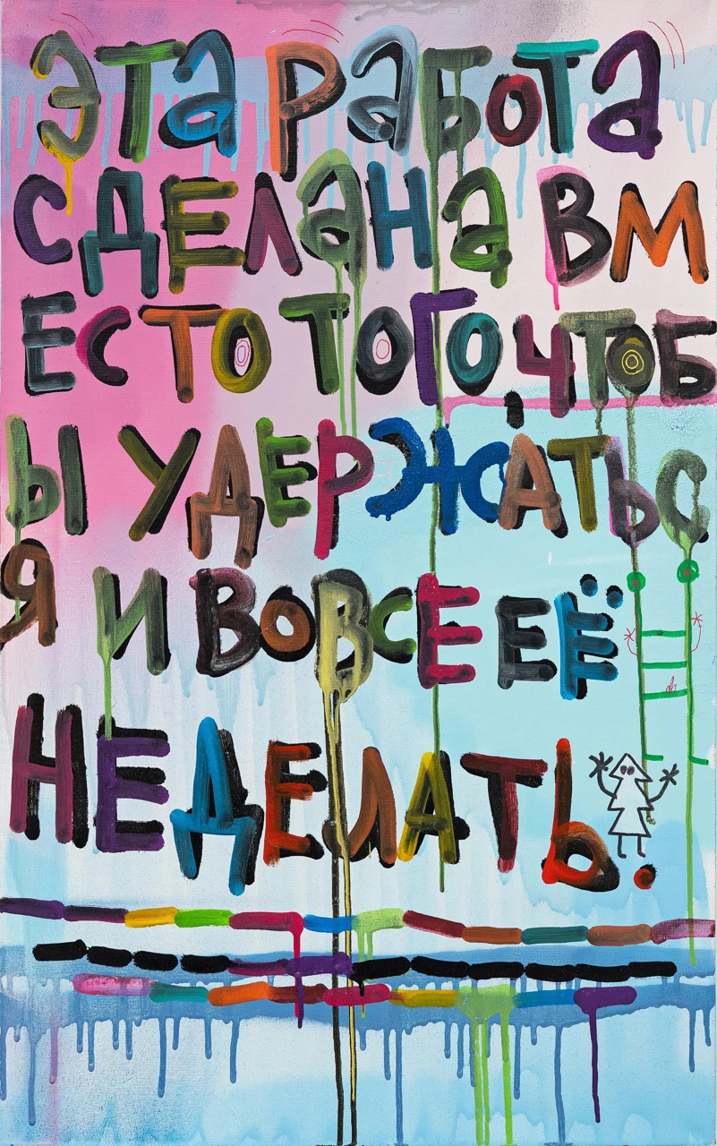 Как и в предыдущих проектах — «Попытка компенсации» (2020), «Чуть больше привычного» (2021), «Всем все понятно» (2023), «Это другое» (2025), — художественное высказывание приобретает у Лебедева форму афористичной языковой игры и подвижной многоцветной пластики, но теперь внутренний монолог автора становится более явным.