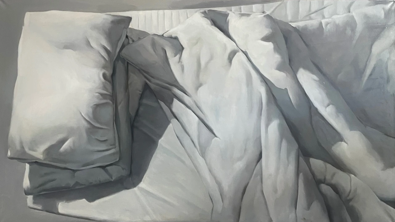 Проект продолжает размышления, начатые в серии «Погружение» 2023-2024 года. В большеформатных картинах ставится вопрос о том, ощущаем ли мы телесность при ее исчезновении, через ее следы — отпечатки присутствия. Лейтмотивом становится образ кровати, рассматриваемый как очень личное и одновременно объединяющее всех людей место присутствия. Человека нет, есть только его следы — заломанные и замятые драпировки, пространство становится отчужденным и пустым. Холодная цветовая гамма усиливает и варьирует это впечатление: здесь кто-то был, но его/их нет. В настоящий момент находятся в разработке первые холсты из серии, требуется додумать и развить проект новыми поворотами и связями.