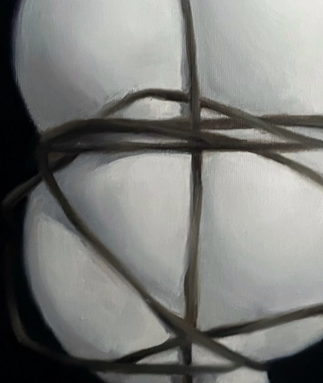 В проекте «Лица» (2025-26) идея деформации/искажения не только внешнего, но и внутреннего, потеря естественного облика. В игровой форме намечается лабиринт пустоты, утраты идентичности. Изображенные шары внутри наполнены водой. Возможно, зритель этого не ощущает. Но для автора вода — утекающая субстанция, утаивание, возможность восстановления смысла.