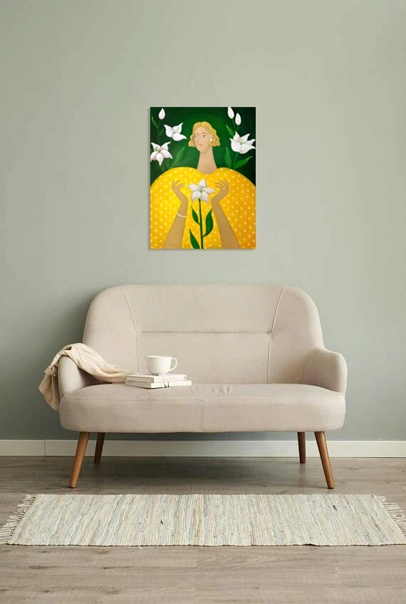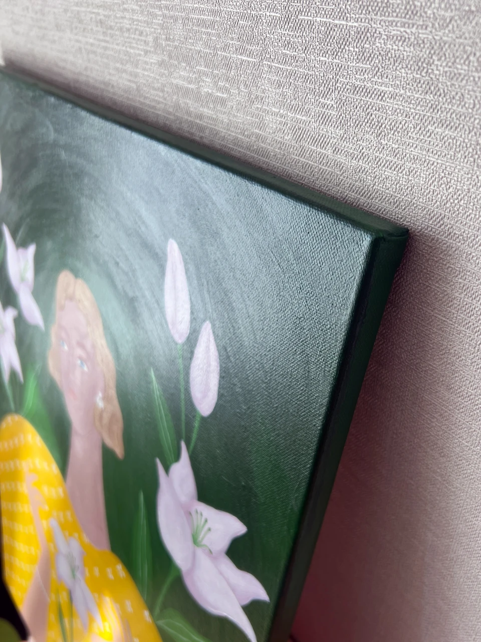 Картина выполнена акриловыми красками на холсте на подрамнике. Картину можно повесить в интерьер без дополнительного оформления, так как все боковые стороны прокрашены. Также можно оформить работу в раму для большего эффекта.
