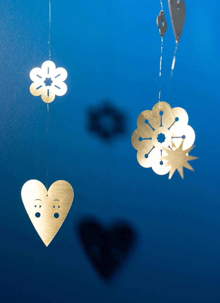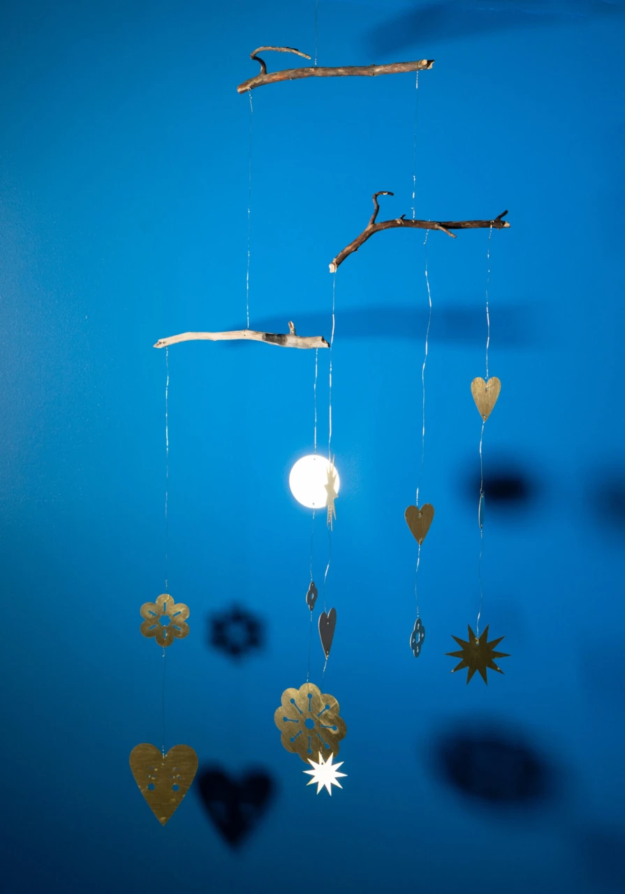 Первое, что вспоминаешь, — работы американского скульптора-модерниста Александра Колдера. Но, кроме этого, для меня вдохновением были игрушки, которые вешают над колыбелью. И третье — это чулпы, накосное украшение казанских татарок, звенящие подвески, которые вплетались в косы. Карл Фукс, этнограф, пишет про татарских женщин: “Татарку всегда было можно раньше услышать, чем увидеть”. Вот этот звон, сопровождающий движение, тоже для меня был важен. Мобили классно звучат на ветру.