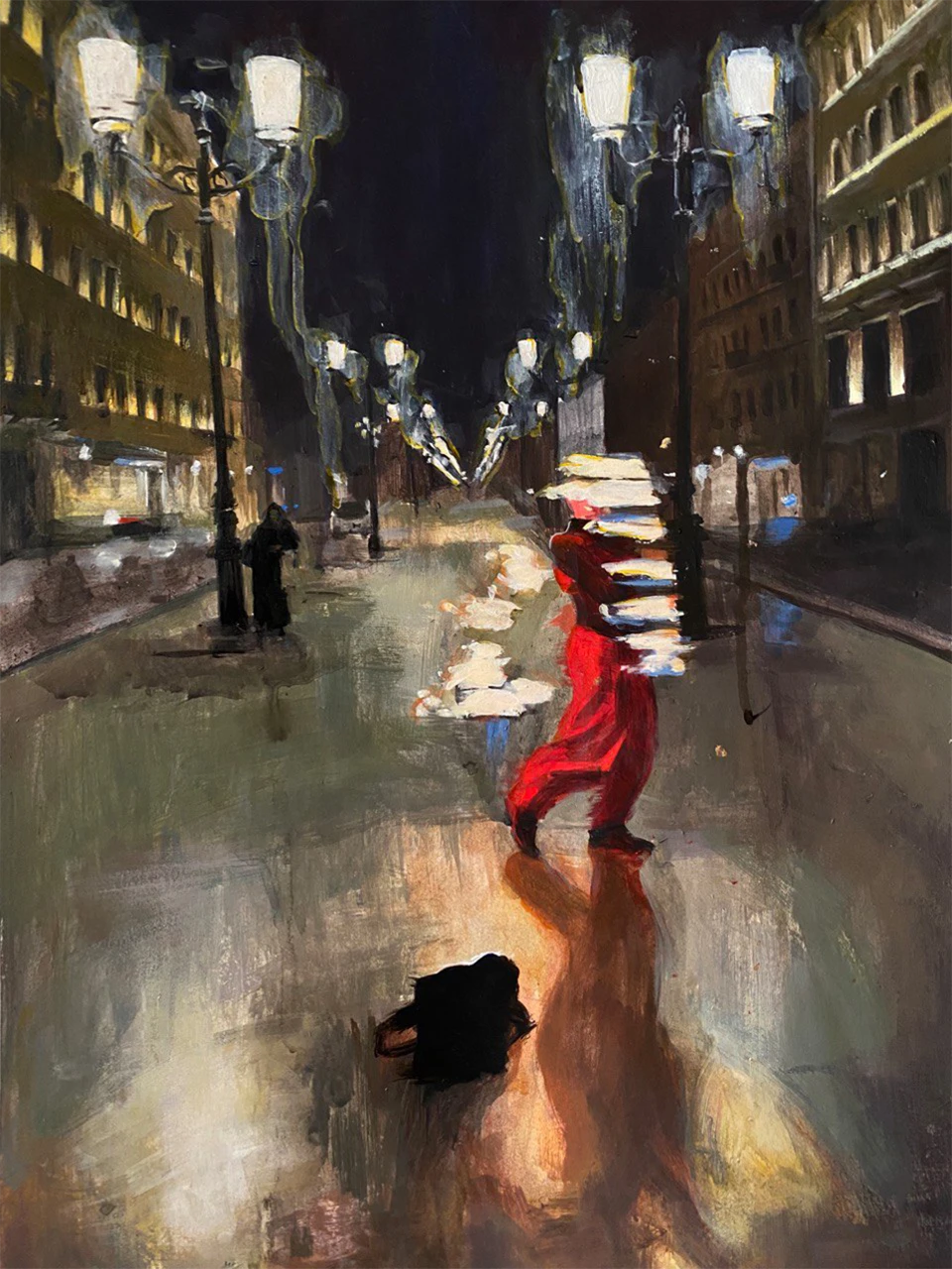 Работа о диалоге «огней» города и человека построена на контрастах света и тьмы, динамики и тишины.