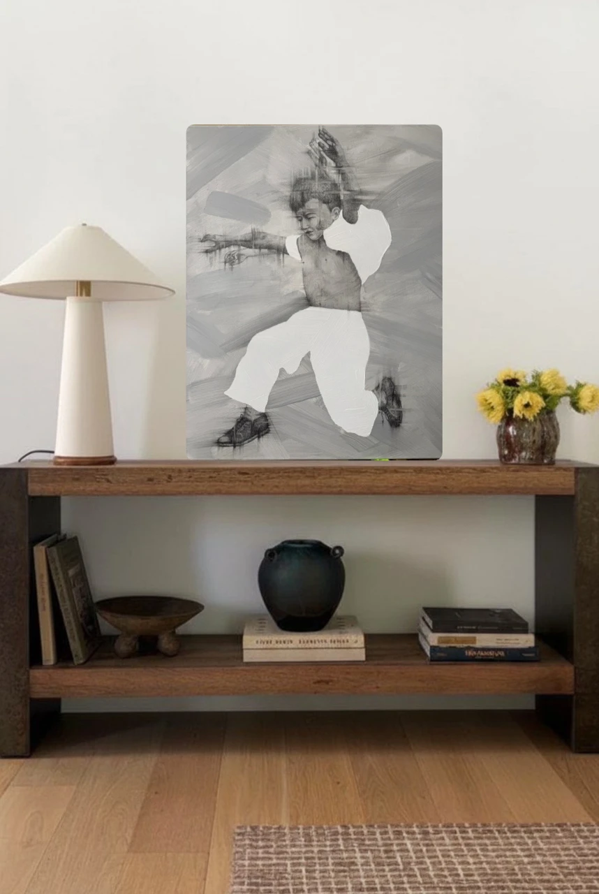 Эта работа исследует природу человеческой памяти. В центре сюжета — мальчик, словно запечатленный на старой фотографии, которая начинает стираться под действием времени.