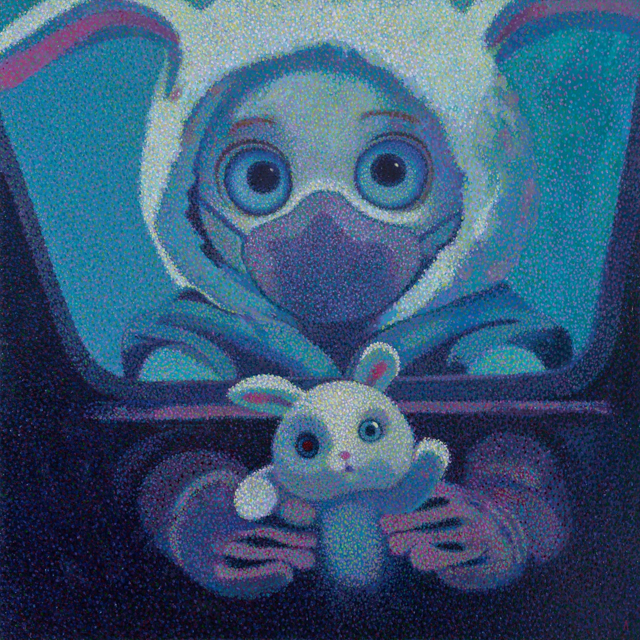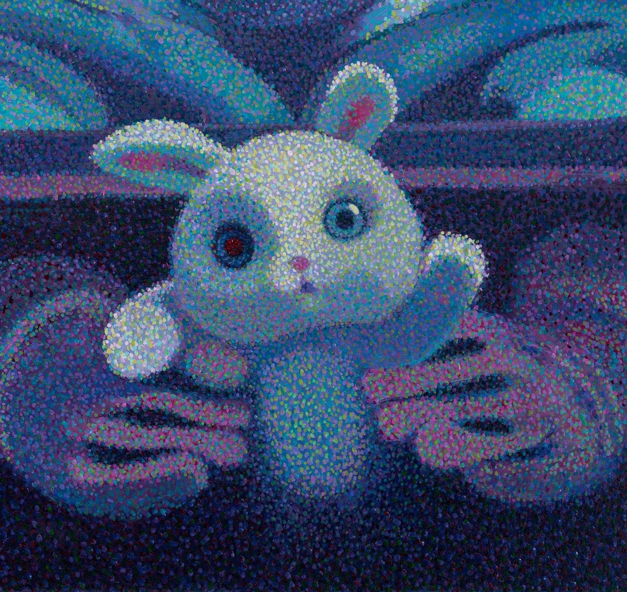 Работа из серии "Детство 2.0". У меня был плюшевый заяц. А потом я заболел желтухой, и мама принесла его в инфекционку, я очень просил. Когда я выздоровел, зайца забрать не разрешили. Я очень расстроился. Через год туда же и с тем же диагнозом попала моя подружка по подъезду. И ей каким-то образом удалось стащить этого зайца, но мне она его тогда так и не отдала.