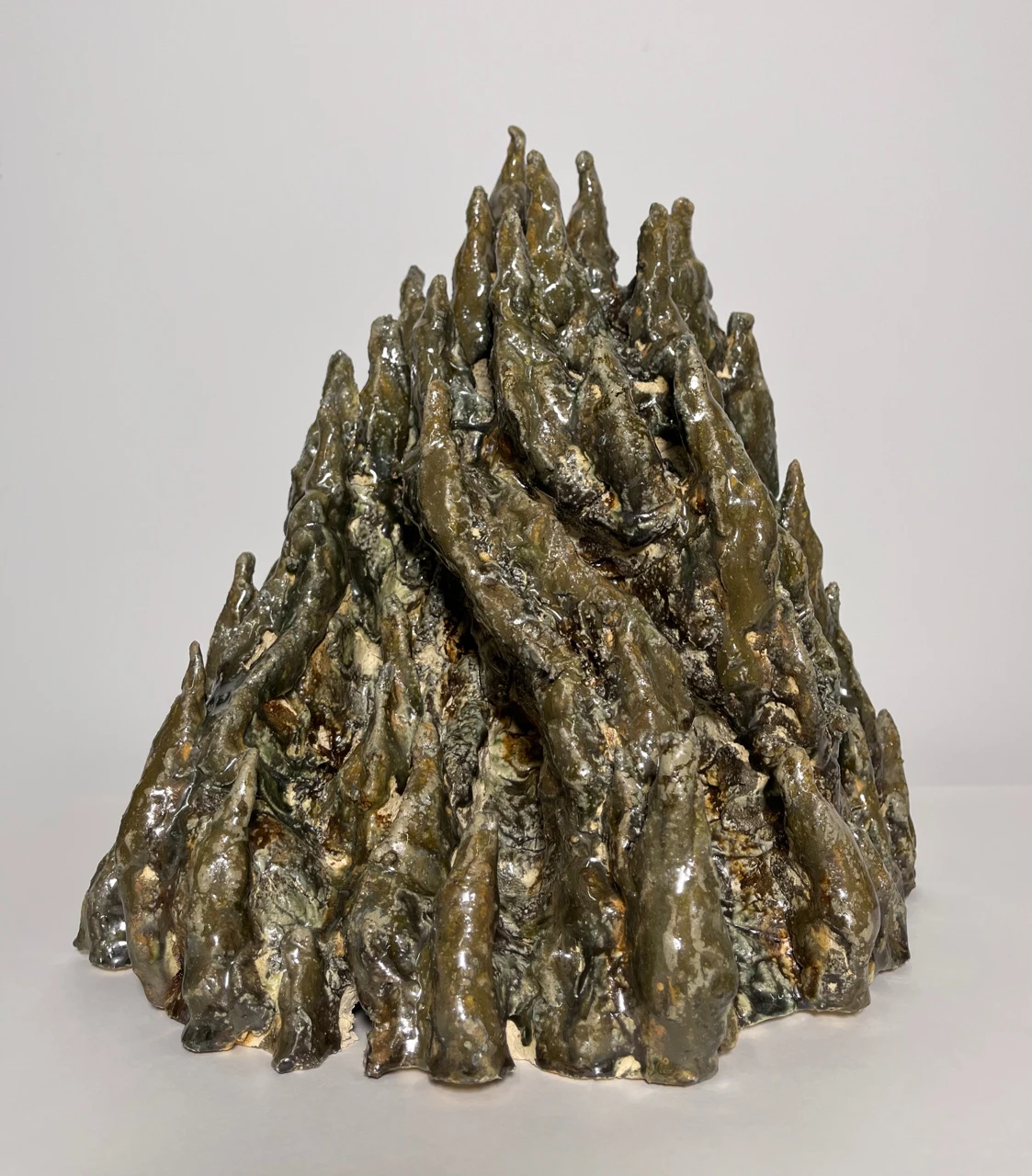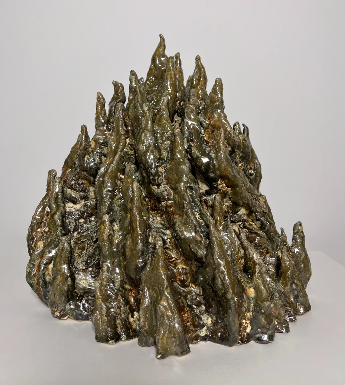 Работа из серии «Архитектура сообщества». Термитник здесь — модель любой цивилизации, чья сложная архитектура рождается не по единому плану, а из миллионов слепых, стихийных взаимодействий. Хаос — как метод, порождающий новый порядок. Термитник предстает как монолит в пустоте (слепой порядок, где каждый шаг предопределен), испещренный множественными ходами — где пустота также необходима, как система опор. Но за этим фасадом скрывается все та же архаичная, хаотичная структура.