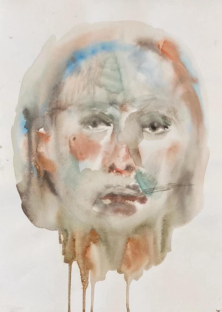 Работа "Автопортрет" — это авторская графика, выполненная акварелью и карандашом на бумаге. Гармоничная палитра, состоящая из приглушенных оттенков серого, коричневого и охры, создает атмосферу задумчивости и интроспекции. Легкие, едва намеченные линии карандаша подчеркивают деликатность изображения, а стекающие вниз капли краски придают работе динамику и ощущение эфемерности. Визуальная составляющая этой работы строится на тонком взаимодействии цвета и формы, передавая не столько физическое сходство, сколько внутреннее состояние. Мягкие переходы тонов и размытые контуры приглашают зрителя к созерцанию и размышлению.