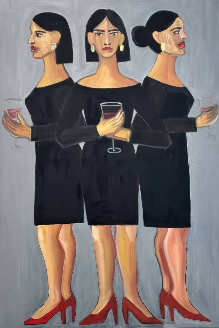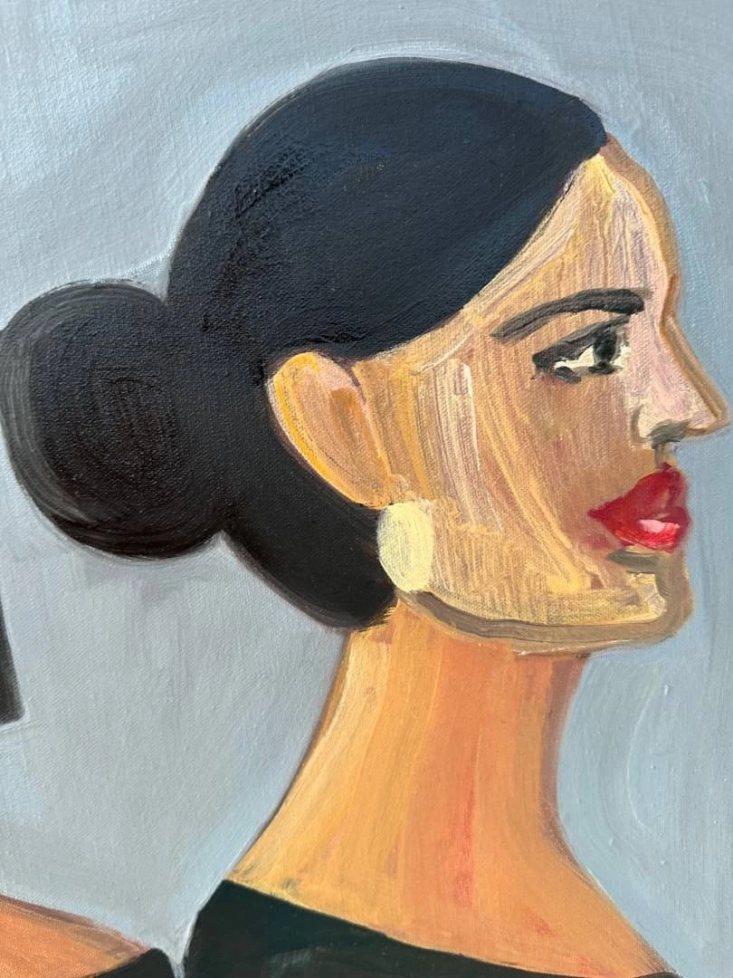 В серии «Mirrored Hearts» я рассуждаю о человеческой близости. Добавляя и удаляя персонажей, оставляя их наедине с собой, «стирая» им лица, я снова и снова исследую тему человеческой близости на физическом и ментальном уровне. Наблюдая, как близкие становятся далекими, а далекие — близкими, иду вглубь для поиска внутренних опор. В определенный момент внешнее перестает быть важным, и мы начинаем поиск внутри. Сердца близких людей могут составлять одно целое и биться в унисон даже на расстоянии, когда телесность изъята из контекста. Одновременно с этим тело проявляет себя как социальный конструкт, пассивный объект в социальном дискурсе. Контекст же субъективных чувств, страданий и желаний становится понятным в момент переноса акцента с внешнего на внутреннее через разное эмоциональное наполнение одинаковых женских фигур.