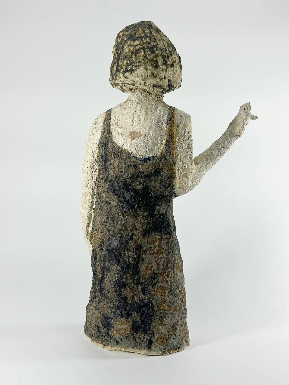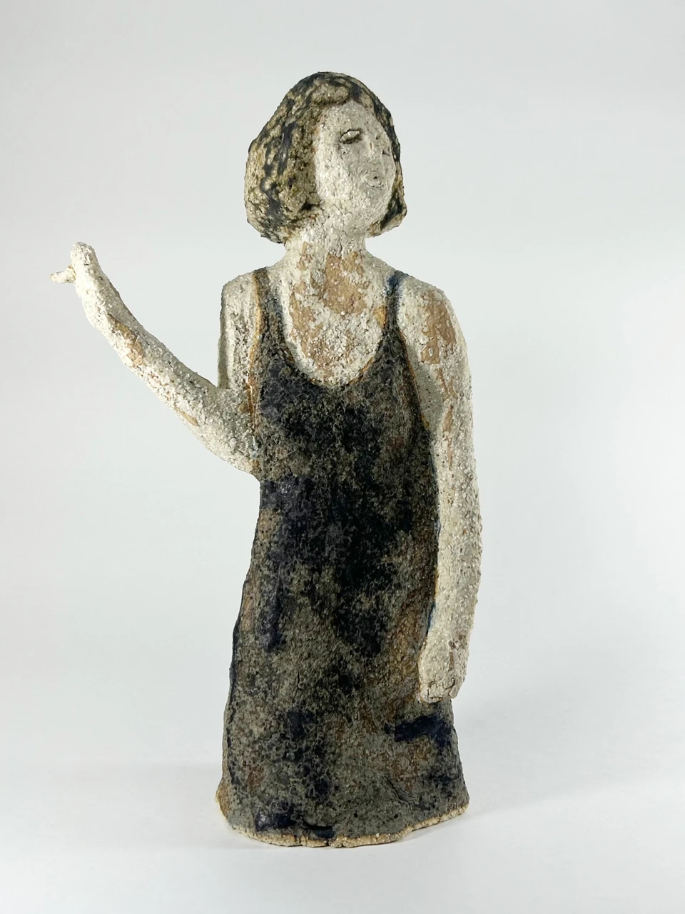 «Наполовину дым» деконструирует архетип роковой женщины, обнажая за эстетическим фасадом хрупкость и экзистенциальный разлад. Опираясь на тезис Славоя Жижека о красоте как вуали, скрывающей внутренний «кошмар» и распад, мифический идеал здесь заменяется образом, в котором сила рождается из уязвимости. Контраст пластичных форм и глубоких тонов глазури создает пространство для размышлений о близости, одиночестве и столкновении страха с желанием.