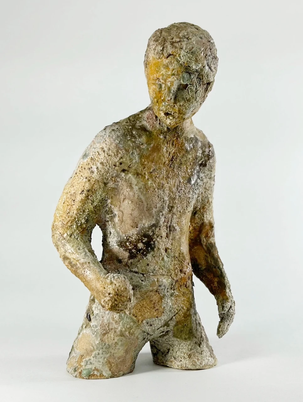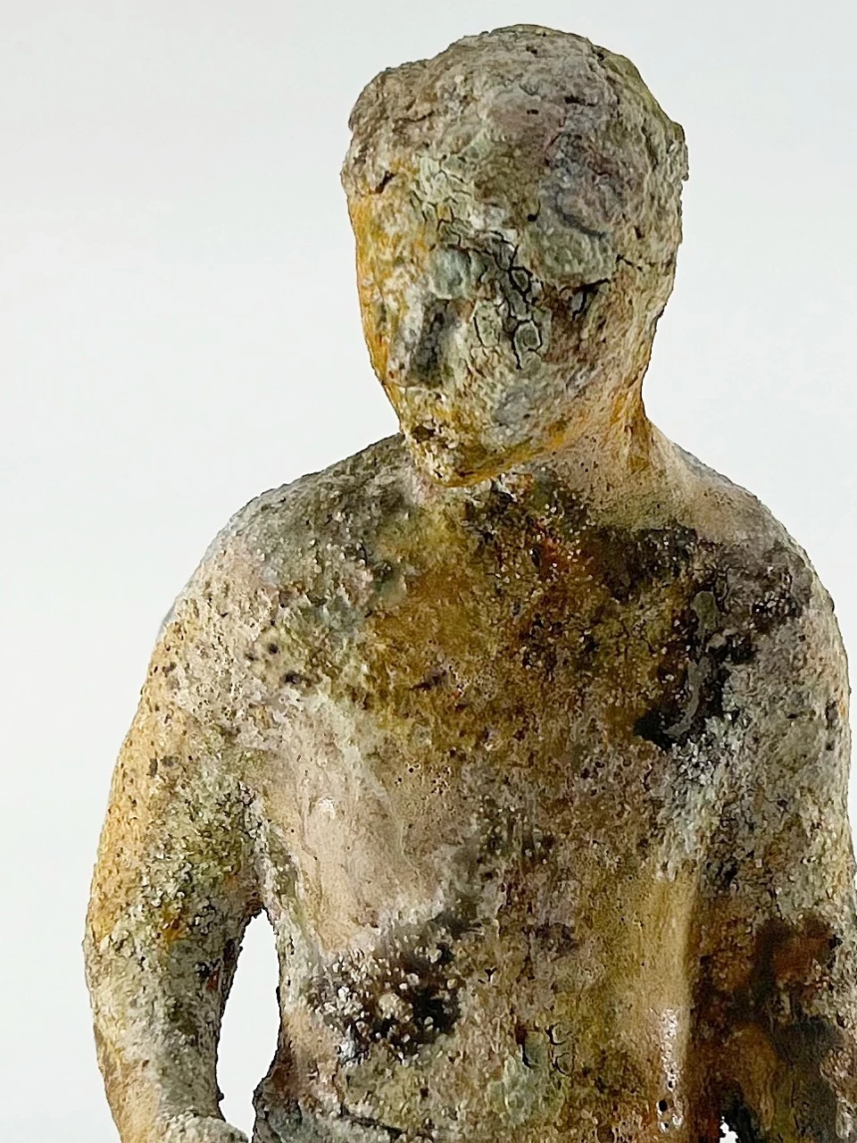 «Укротитель бездны (своей собственной бездны)» затрагивает тему самопознания через внутренний конфликт, который здесь представлен не как триумфальное укрощение, а как постоянное, изнуряющее противостояние. Шероховатая, коррозированная текстура и землистые оттенки поверхности работы имитируют процесс распада и энтропии, а напряженная поза фигуры воплощает попытку удержать контроль над первобытными, иррациональными силами внутри себя. Скульптура предлагает зрителю размышление о тщетности и одновременно необходимости этой внутренней борьбы как неотъемлемой части человеческого опыта.