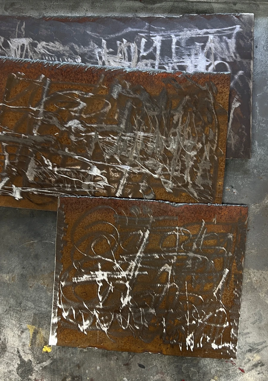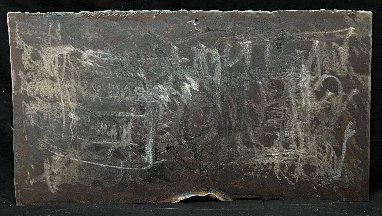Работа создана в процессе участия в 1-м сезоне Московских Мастерских. Использовано несколько техник и материалов — металл, оттиск, сталь, рисовая бумага, тушь.
