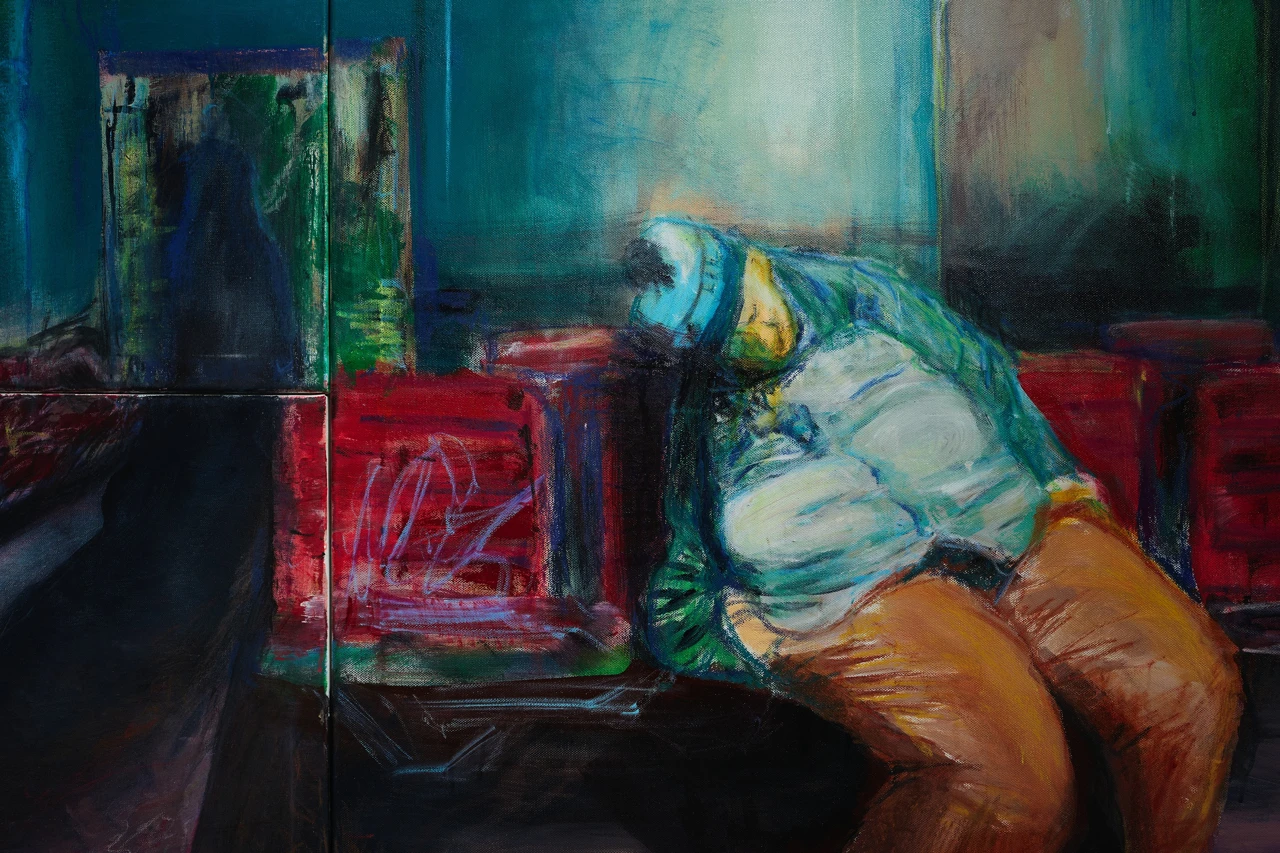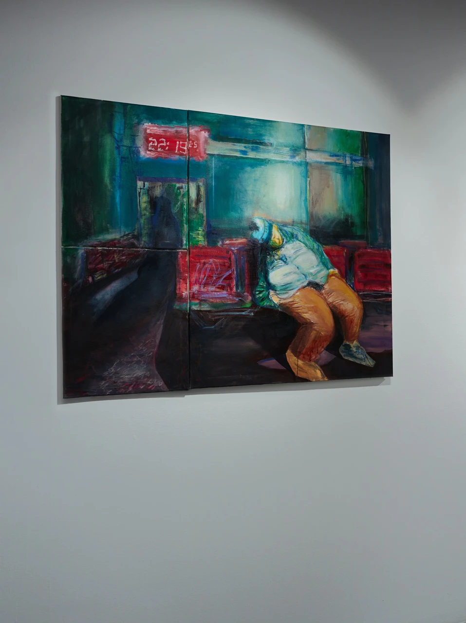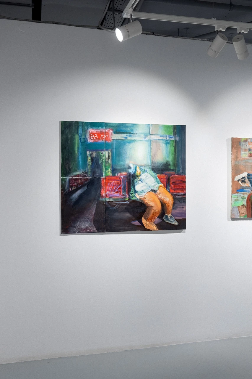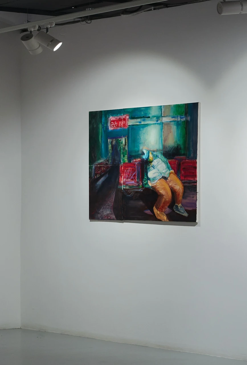 Работа является частью серии «Зал ожиданий» и была впервые показана на выставке «Квартирник» в курортном поселке Пирогово, а затем на персональной выставке в Cube Moscow в 2024 году.