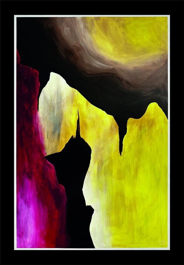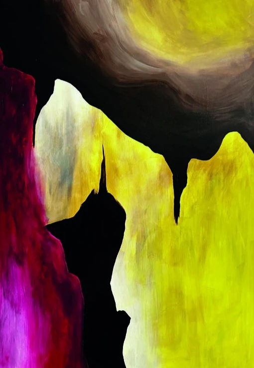 В этой работе есть момент внутреннего клятвенного решения — того, которое не произносится вслух, но меняет траекторию существования. Тёмная масса сверху — нависшая тяжесть, как угроза разрушения или окончательного падения. Это состояние, когда внутреннее небо превращается в свод, готовый обрушиться. Красная вертикаль слева — боль, эмоциональная или нравственная, почти жгучая, та самая точка, от которой невозможно больше отворачиваться. И при этом есть чёрная фигура — словно тень самой себя, собранная, выпрямленная, застывшая в состоянии внутреннего выбора. Она ещё не действует, но уже приняла решение не быть уничтоженной. Жёлтое пространство — не свет в привычном смысле, а обещание силы, которая ещё не пришла, но могла бы прийти, если удержаться. Белое — намёк на очищение, но не как готовый результат, а как амбиция души не утонуть в собственной тьме. «Обет спасения» — это когда человек даёт себе слово вытащить себя из бездны. Даже если ещё не знает как. Даже если ещё больно. даже если всё вокруг выглядит безвыходным. Он ещё не исцелен — он просто пообещал себе, что выживет, и в этом обещании впервые появился шанс.