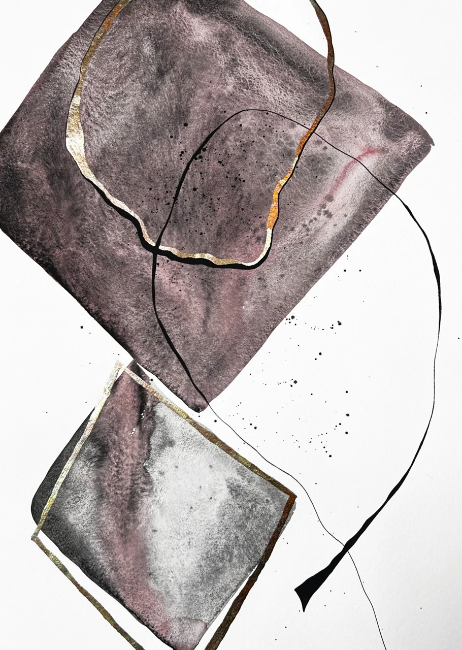 Верхняя фигура — более плотная, насыщенная, похожая на первичное эмоциональное состояние. Оно сохраняет глубину, но ещё не объяснено. нижняя — светлее, будто уже прошедшая этап анализа, почти выцветшая, как чувство, превратившееся в мысль.