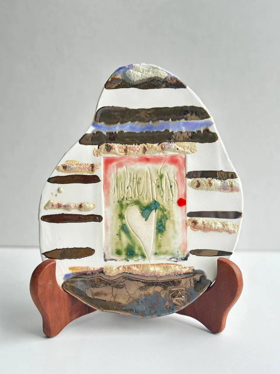 Вы можете поставить или повесить работу в своем интерьере. К данной работе изготовлена подставка из шамотной глины и дополнительно имеется съемный подвес на стену.