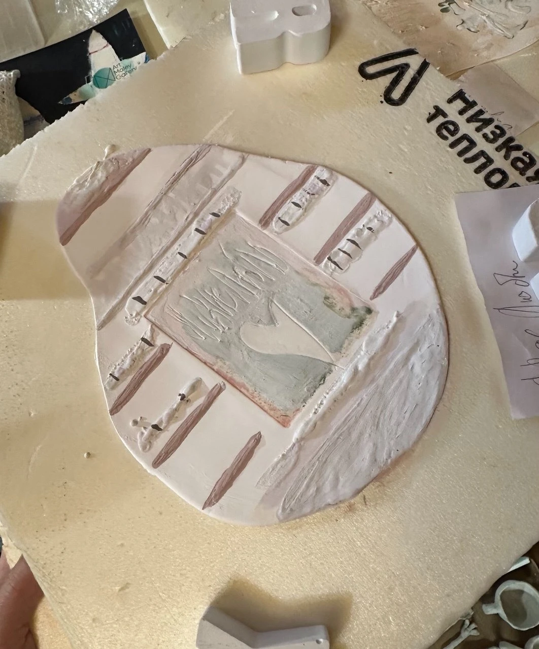 Одна из работ серии «МЫСЛИ». Это монолог с окружающим миром. Вылепленные в ручную фарфоровые пласты с фразами, которые говорит тебе твой внутренний голос.
