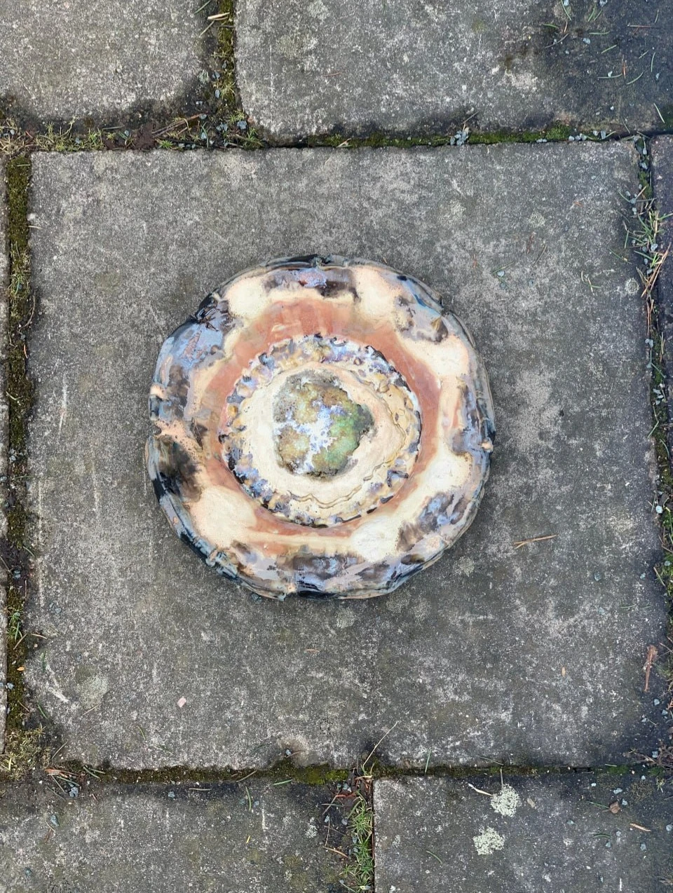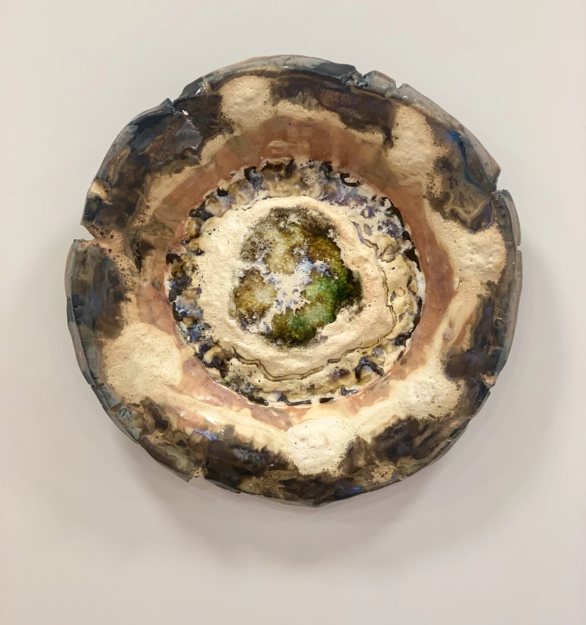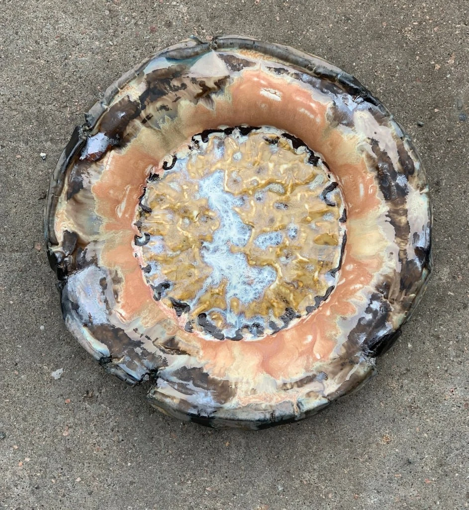 В этой работе один из первых моих экспериментов со стеклом. Это высокотемпературная керамическая масса с обжигом на 1200градусов. На этой же температуре обжигалось и стекло, что бы добиться эффекта кипения. Участвовала в выставке в 2023 году в Москве.