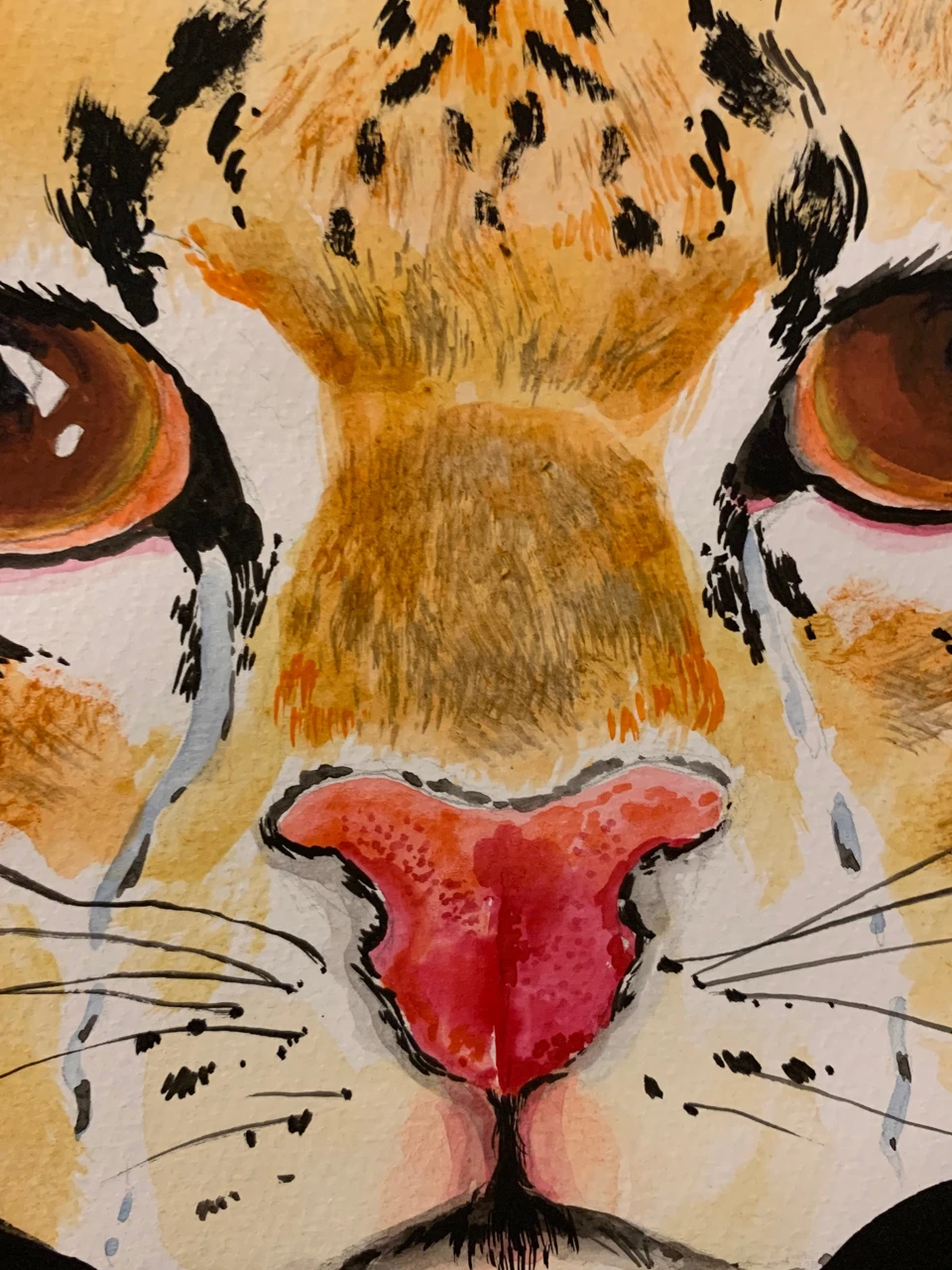 Выполнена на плотной акварельной бумаге, акварелью и акрилом.