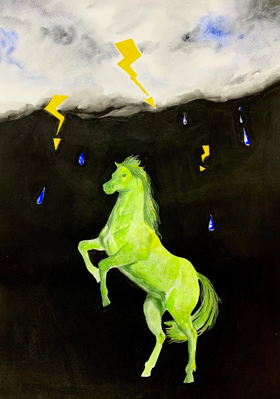 Несколько раз в жизни я оказывалась под открытым небом посреди страшнейшей грозы. Меня совершенно завораживает это явление! Я попыталась передать то чувство страха, восторга, паники и гордости за то, что в твоей жизни случилось мгновение, что ты осталась один на один со стихией.