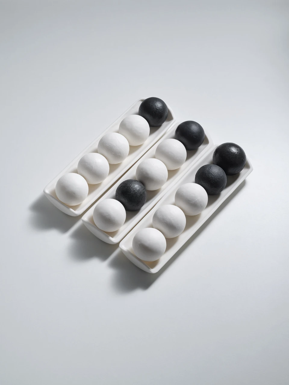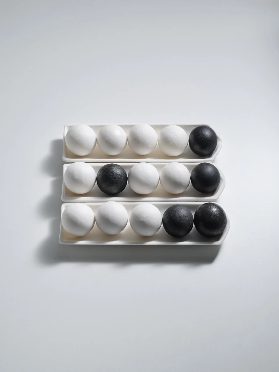 В процессе создания этой работы, я переставляла местами шарики один за другим, и каждый раз «картина» наполнялась новым смыслом. Так родилось название Ellipses — размышление о многомысленности.