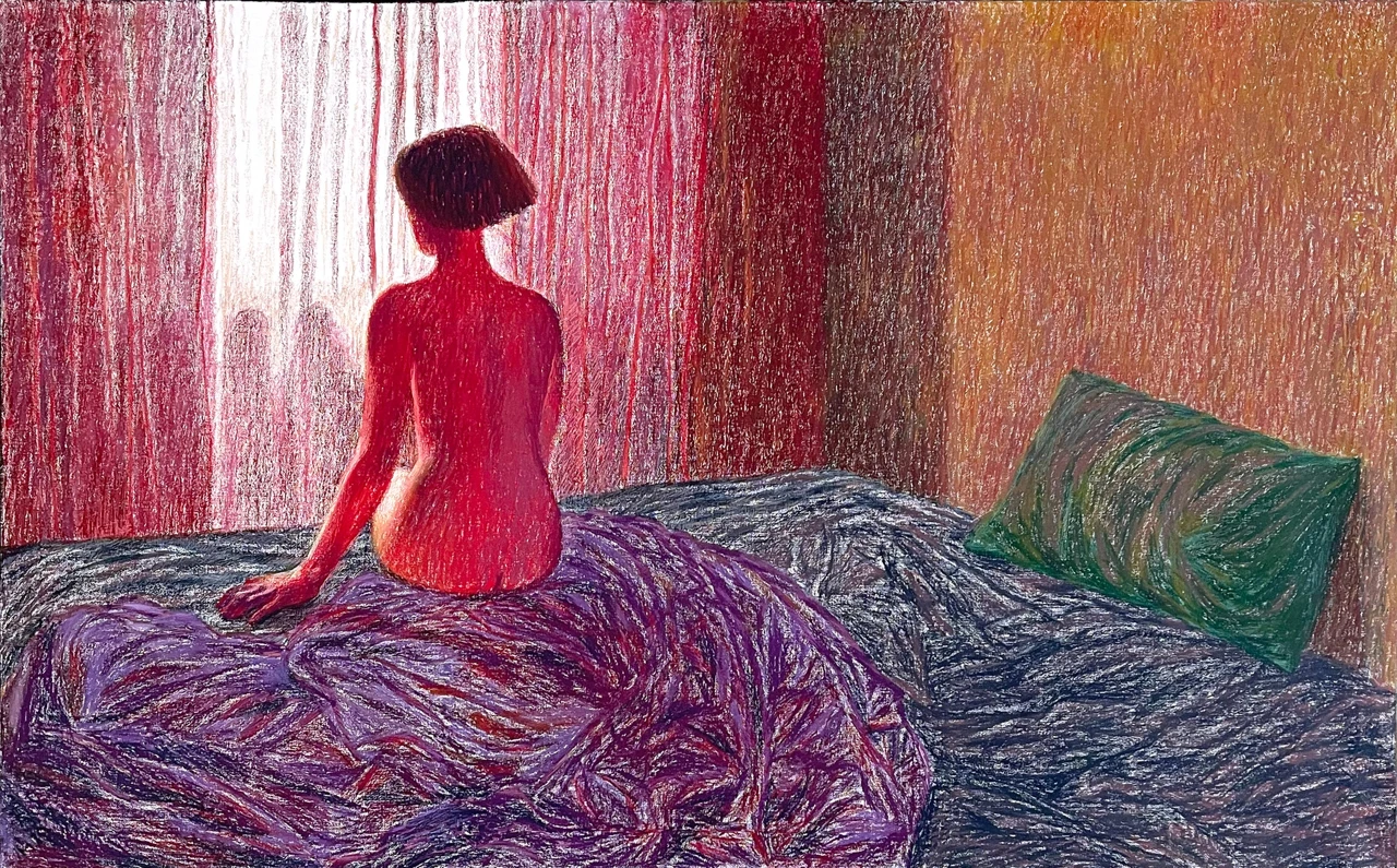 Личный, глубоко интимный нарратив Марии Евдокимовой пронизан чувственностью, которая понимается автором как созерцание или воображаемый соблазн — сексуальность здесь не нарочита и искусственна, а нечто естественное, свойственное человеческому телу. В некоторых «автопортретах» эротизм сталкивается с вопросами — что лучше/проще: самому желать или быть желанным? Как ощущается телесность сейчас, на фоне «исторической турбулентности и физической неопределенности»? Если настоящее исчезло, а будущее рассыпалось, что может стать отправной точкой художественной работы: сны, воображение, наваждение, воспоминание? И как сегодня понимать собственную экзистенцию как в запечатленном моменте, так и в «индивидуальном потоке времени»? И что в данное время синхронно существованию героини? Тоска по непрожитой жизни, невидимая любовь, которая впала в спячку, замирание, замкнутость, а ожидание — как утешение.