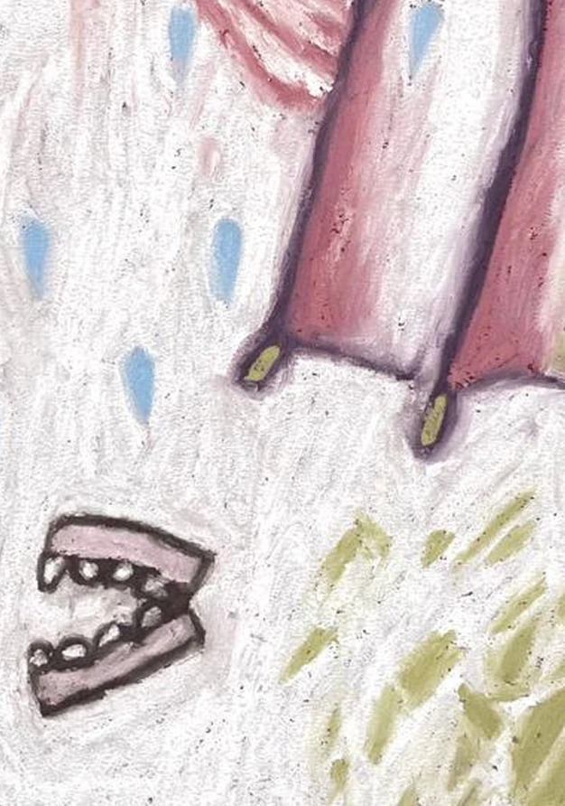 Эта серия — попытка зафиксировать воспоминания, восприятие и ошибки зрения как равнозначные элементы реальности. Каждый рисунок — наивный фрагмент события, увиденного не глазами, а внутренним ощущением. Мир здесь не прорисован — он предположен. В детстве я видела мир через близорукость (у меня было зрение-6). Все предметы в её поле зрения были расплывчатыми тенями, требующими расшифровки. Что это — стул или человек? Кошка или сумка? Глаз угадывал, а мозг достраивал. Цветовые пятна в этих рисунках не разделены, а смазаны, как будто границы объектов растворены в пространстве. Это телесный отклик на то, как я воспринимаю мир — не через чёткие контуры, а через эмоциональные пятна, вибрации цвета, ожидание формы. Ошибки восприятия становятся частью повествования: в какой-то момент в сюжет «проскакивает» объект, которого не было, но который оказался навязчиво важен в момент работы. ​ Эти работы — не про точность, а про интуицию, телесную догадку, ошибку как способ правды. Когда мы моргаем, мир исчезает на долю секунды — и возвращается не всегда точно таким же. Именно это дрожание и неуверенность я пытаюсь зафиксировать.