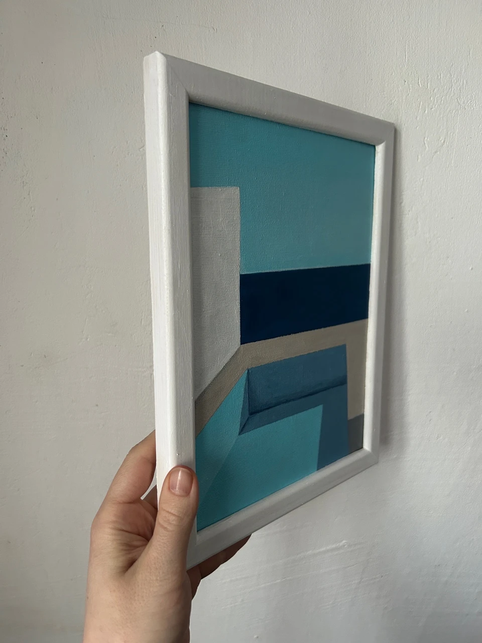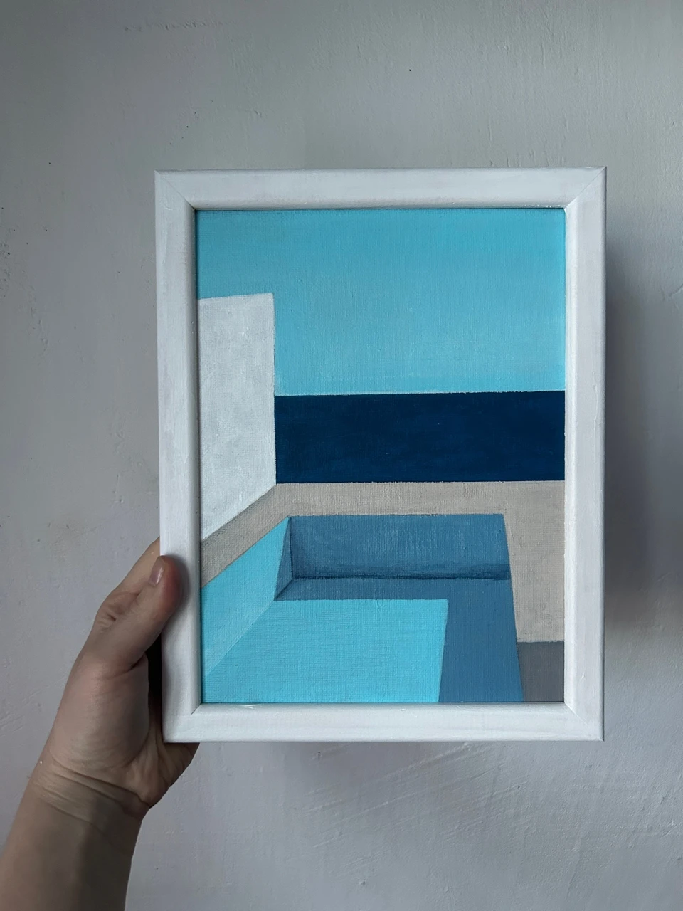 Миниатюрный холст с пустынной солнечной архитектурой, ещё не окно, в другую солнечную реальность, но пусть будет форточка.