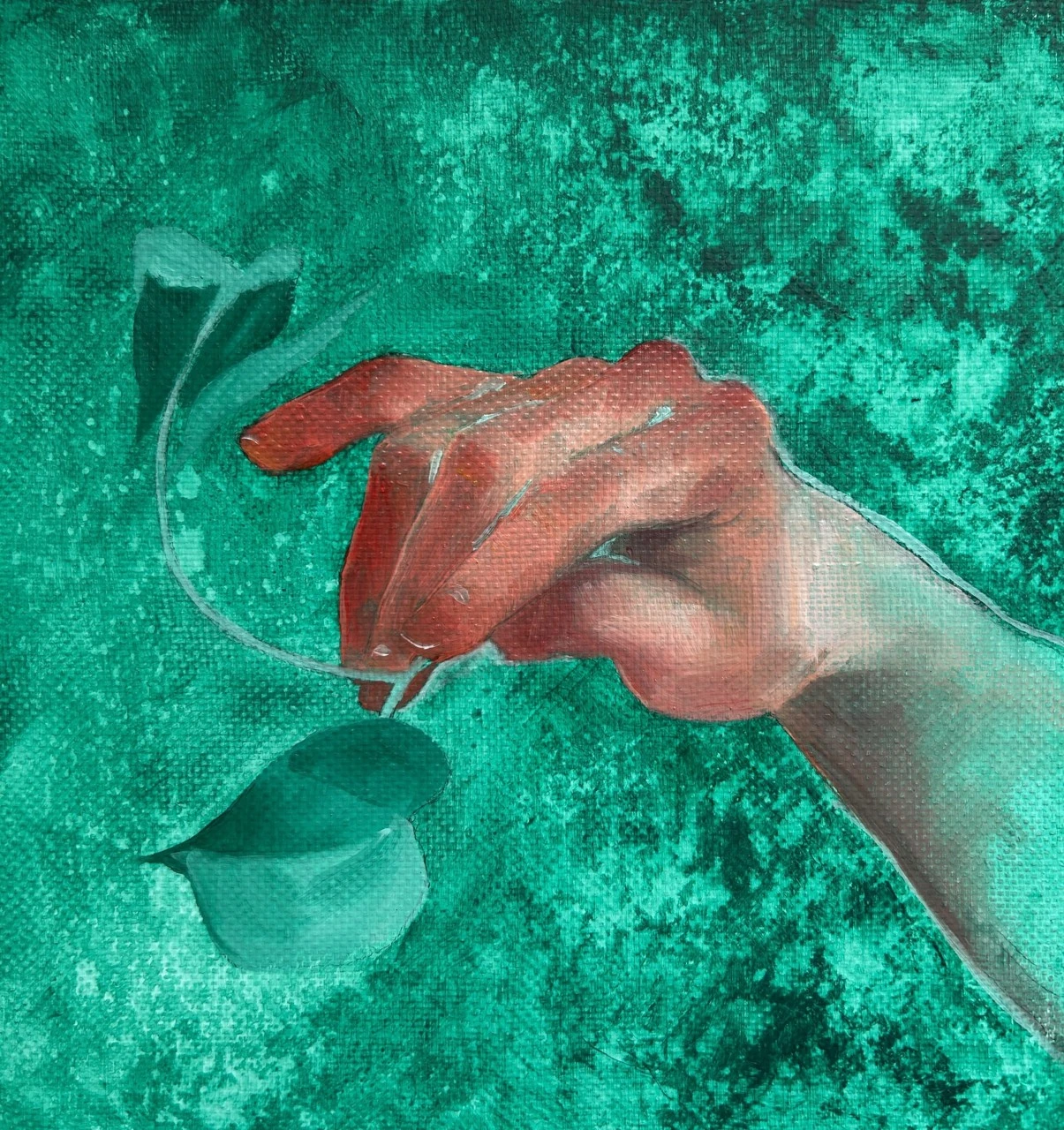 Познание этого мира начинается с тактильных ощущений — с детства мы трогаем все руками. Для меня кончики пальцев имеют прямую связь с внешним миром, поэтому я изображаю их покрасневшими, словно они только-только чего-то коснулись и что-то познали.
