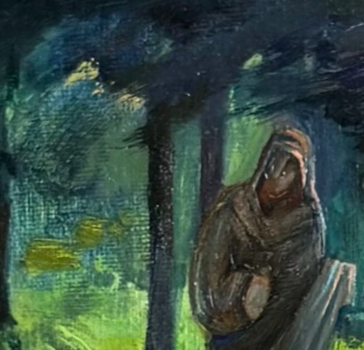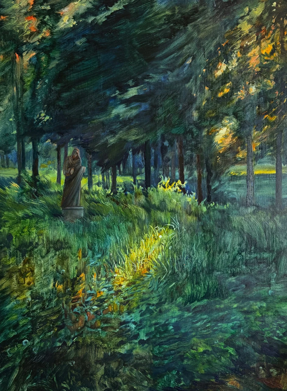Картина выполнена маслом на холсте. Контролируемая пластичность масляной краски важна для художницы тем, что оставляет пространство для непредсказуемости, позволяя образу «случаться» в процессе. Также благодаря свойствами масляной краски изображение формируется постепенно, позволяя обнаруживать новые состояния и усиливать выразительность образа.